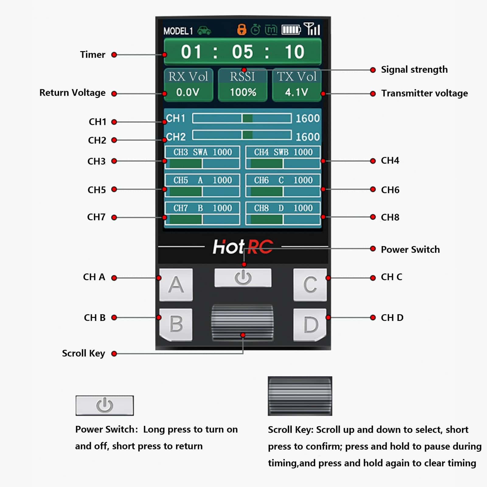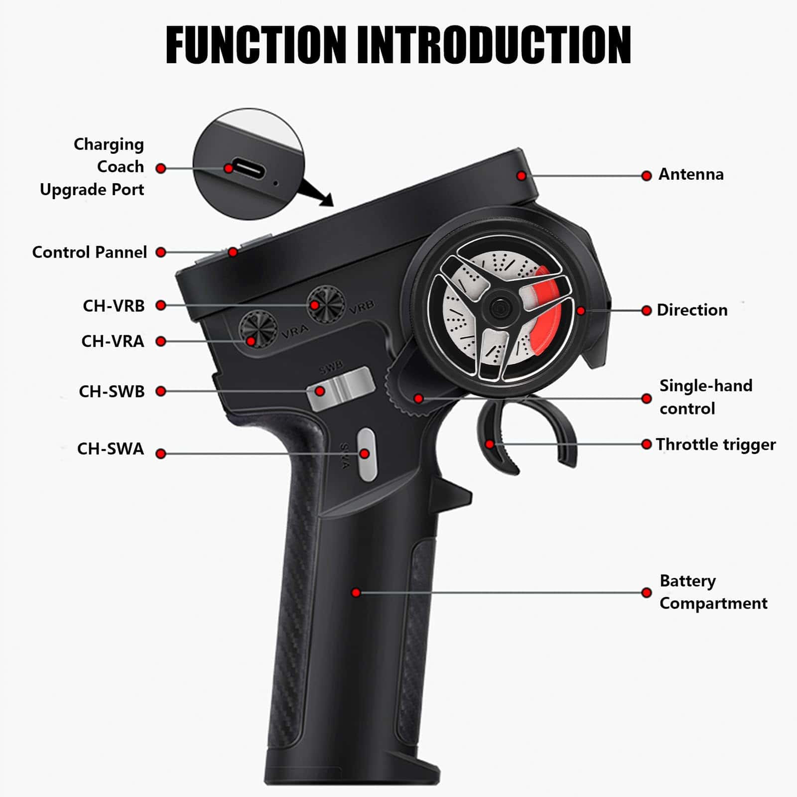 Tecnología 2.4G: Tecnología 2.4G, espectro de salto de frecuencia FHSS, excelente capacidad anti-interferencias.