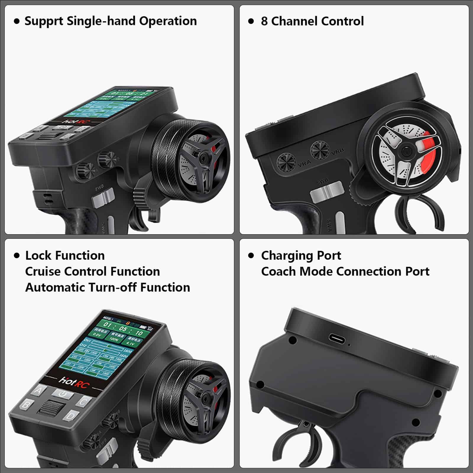 Con pantalla a color de 2.4 pulgadas y múltiples funciones como función de bloqueo, protección contra pérdida de control, control híbrido, función de instructor y control de crucero.