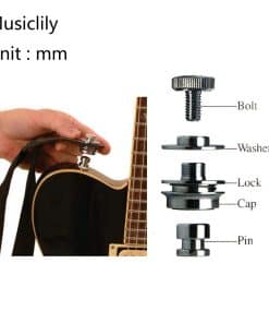 Sistema de seguridad Musiclily Pro Heavy Duty Guitar Strap Locks es la solución perfecta para mantener tu guitarra segura durante tus actuaciones. Esta versión mejorada del botón de correa de seguridad se adapta a la mayoría de las guitarras, como Fender Strat y Tele guitarra eléctrica acústica, bajo, ukelele. Los bloqueos de correa aseguran la correa de manera increíblemente segura, protegiendo tu guitarra de resbalar de la correa y caer al suelo. Es importante tener el hábito de revisar tu correa de guitarra y sistema de bloqueo antes de tocar.
