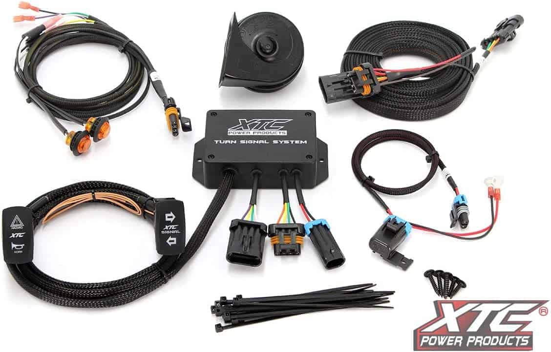 XTC Power Products lidera el camino en cableado UTV. Instalar señales de giro en un UTV es más fácil que nunca con nuestro Sistema de Señal de Giro Plug and Play para el Polaris General del 2016 al 2018. El TSS (Sistema de Señal de Giro) consta de una caja de control de relé y claxon que se monta debajo del capó y señal de giro, y interruptores de peligro/claxon personalizados que se montan en el tablero.
