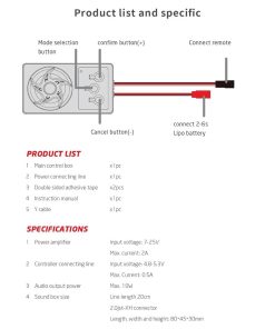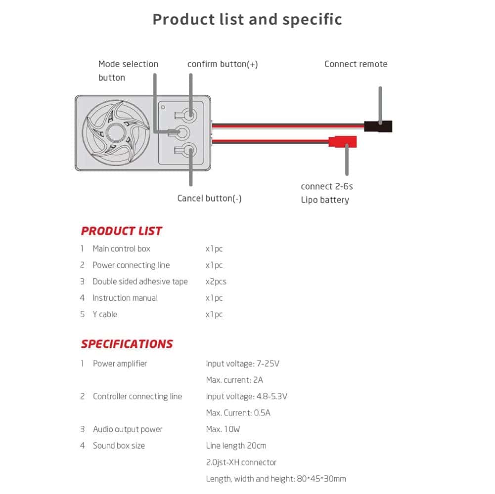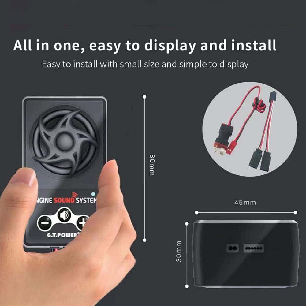 Mejora tu experiencia con autos RC con el Sistema de Sonido Simulado del Motor Triplot GTPower, diseñado para varios tipos de vehículos RC, incluidos crawlers, de carreras, cortos y camiones todo terreno. Este sistema compacto ofrece 58 tipos de sonidos realistas, desde ruidos de motor hasta frenos y alarmas de peligro, todos respondiendo proporcionalmente a tu comportamiento del acelerador. Con parámetros personalizables como el tiempo de respuesta y el volumen, puedes adaptar el sistema de sonido a tus preferencias. El sistema de PA de alto rendimiento garantiza un bajo consumo de energía, preservando la vida útil de la batería de tu auto RC. Con un peso de solo 0.35 libras y un tamaño de 3.15 x 1.7 x 1.18 pulgadas, es una adición ligera y fácil de instalar a tu vehículo. Apto para mayores de 6 años, este sistema de sonido es un gran regalo para niños y aficionados por igual.
