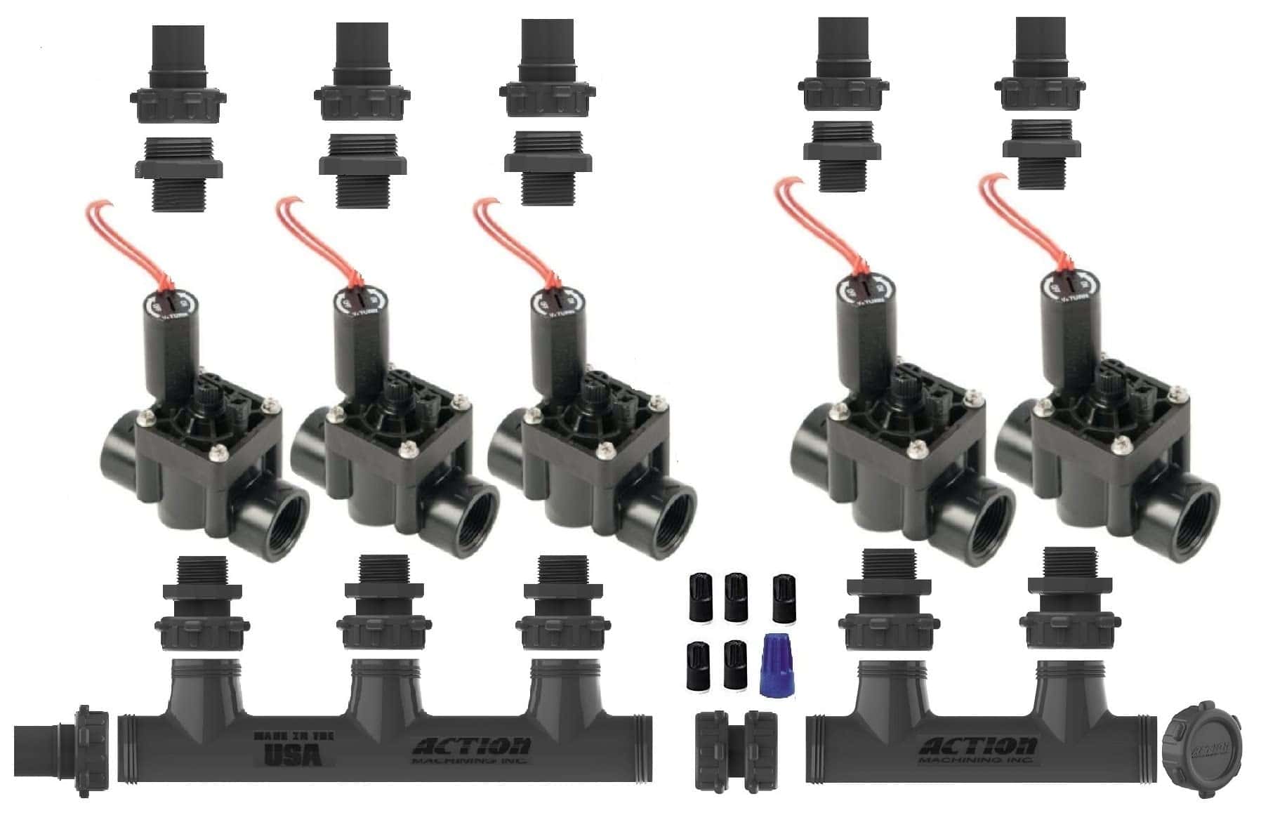 Viene con Válvulas Hunter de 1″ Slip con Control de Flujo. Kit preconfigurado sin complicaciones. No hay problemas al especificar, configurar e instalar un sistema de manifold completo. Amplíe fácilmente su sistema de manifold. Reemplace las válvulas sin cortar en el manifold. Especificaciones de la Válvula Hunter: El purgado manual interno/externo permite una activación rápida y sencilla en la válvula. El diseño de sellado de diafragma con doble reborde garantiza un rendimiento sin fugas. Los tornillos de capuchón cautivo eliminan la posibilidad de partes perdidas durante el desmontaje. Los tornillos de capuchón triple herramienta son compatibles con destornilladores estándar o de estrella, así como con un llave de tuercas. El solenoide encapsulado con un émbolo cautivo utilizado en cada válvula Hunter proporciona un servicio sin complicaciones.