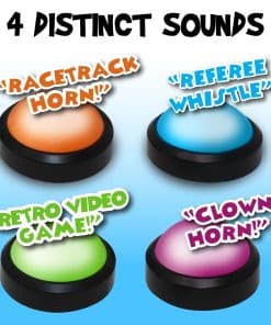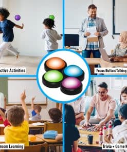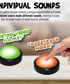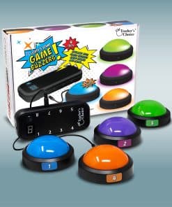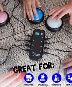 Sistema de zumbadores de juegos iluminados de Teacher’s Choice, perfecto para agregar emoción y competencia a tu próximo evento. Cada zumbador tiene sonidos únicos para diferenciar a los jugadores y la consola mostrará el número correspondiente cuando se presione un zumbador. Ideal para programas de juegos, noches de trivia, concursos de ortografía e incluso actividades en el aula. ¡Haz que tus eventos sean más interactivos y emocionantes con este sistema de zumbadores de juegos de alta calidad!
