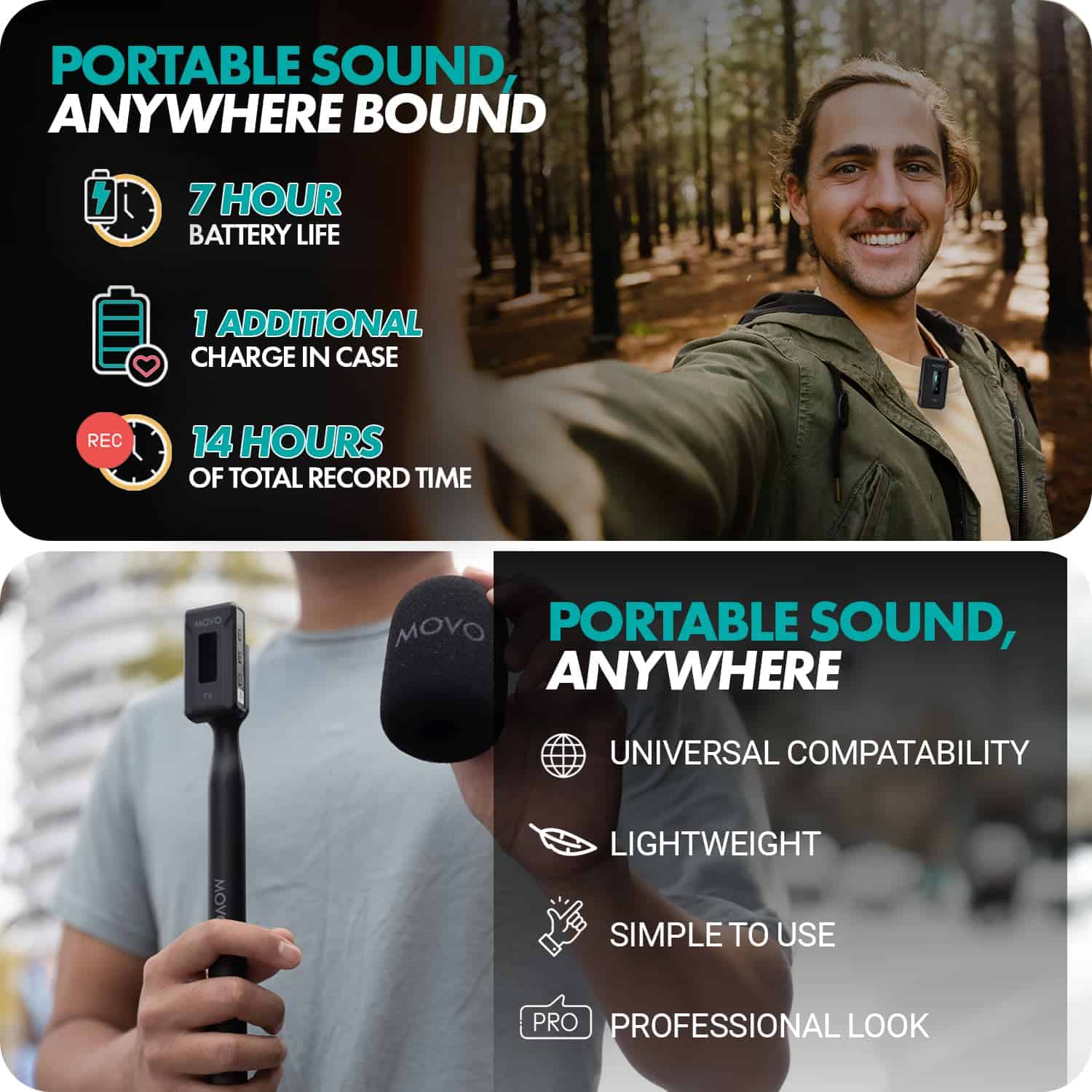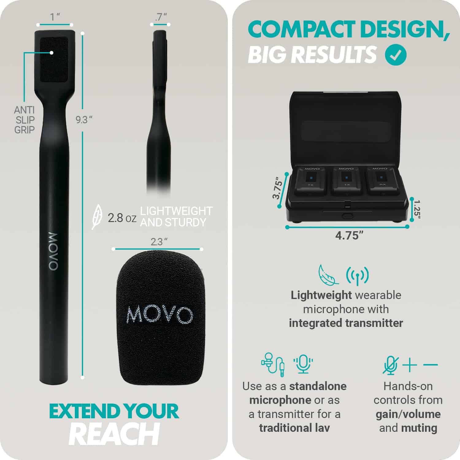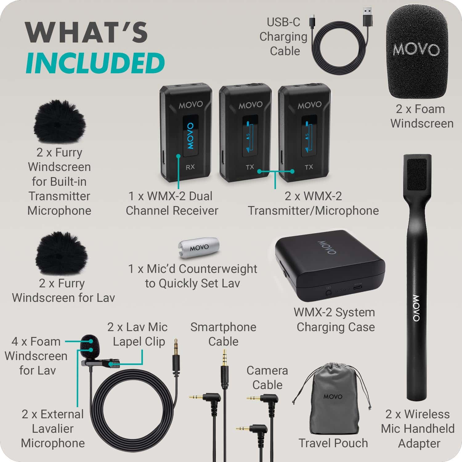 1. SISTEMA INALÁMBRICO DE DOS MICRÓFONOS ULTRA COMPACTO: lleva el audio profesional contigo con un sistema inalámbrico altamente portátil de 2.4GHz. Con dos micrófonos/transmisores portátiles y un receptor de emparejamiento automático, tendrás todo lo necesario para capturar audio de grado profesional para dos voces. 2. SISTEMA INALÁMBRICO DE DOS MICRÓFONOS ULTRA COMPACTO: lleva el audio profesional contigo con un sistema inalámbrico altamente portátil de 2.4GHz. Con dos micrófonos/transmisores portátiles y un receptor de emparejamiento automático, tendrás todo lo necesario para capturar audio de grado profesional para dos voces. 3. SEÑAL CONFIABLE A LARGA DISTANCIA: el sistema de micrófono opera en una banda de transmisión de 2.4GHz altamente estable y cuenta con Salto de Frecuencia Adaptativo (AFH), asegurando una señal clara y libre de ruidos a distancias de hasta 328 pies. Graba en mono o estéreo. 4. ESTUCHE DE CARGA: con una duración de batería de hasta 7 horas, y un estuche de carga que te proporciona una carga adicional completa, puedes grabar todo el día sin preocuparte por quedarte sin batería. 5. GARANTÍA DE 1 AÑO: ¡Te respaldamos! Nuestros productos están diseñados para facilitar tus problemas técnicos, no añadir más. Nuestro amigable soporte basado en los Estados Unidos está aquí para ayudarte