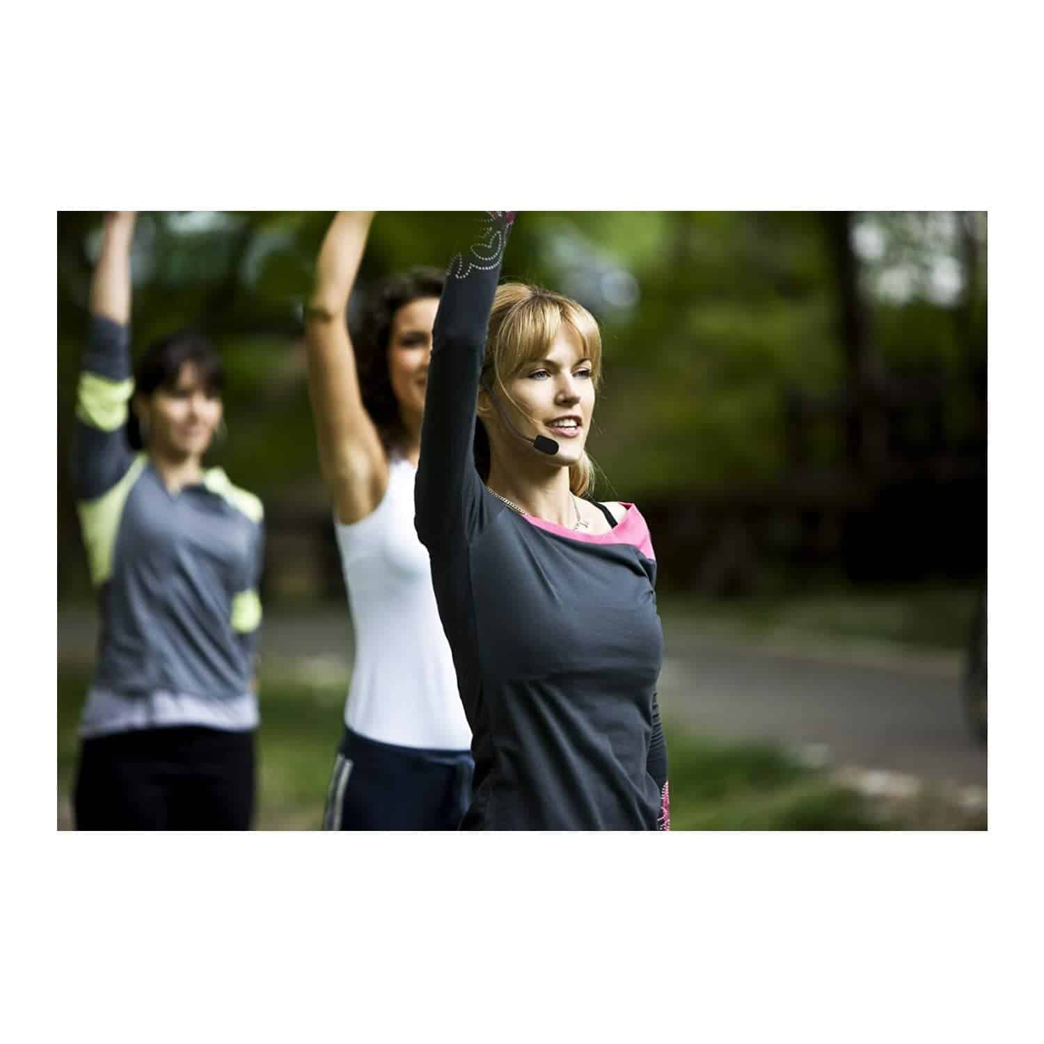 ¡Deshazte del volumen, enciende tu rutina de fitness! Sistema de Auriculares Inalámbricos Samson AirLine 77 Muévete libremente y concéntrate en tu entrenamiento, no en tu micrófono, con el Sistema de Auriculares Inalámbricos Samson AirLine 77. Diseñado para instructores de fitness y artistas activos, este innovador sistema cuenta con un auricular resistente al sudor y un transmisor único que se encuentra montado en el auricular mismo. Funcionando en la fiable banda UHF, el sistema proporciona hasta 300′ (90m) de operación inalámbrica sólida como una roca. ¡Di adiós a los bodypacks voluminosos y a los cables enredados! El micro-transmisor AH7 se monta directamente en el auricular. Esto es único en comparación con los sistemas inalámbricos tradicionales que suelen utilizar un cinturón con un cable que va desde el micrófono hasta el transmisor. El transmisor AH7 funciona hasta ocho horas con una sola batería AAA. El micrófono de condensador Samson Qe cuenta con una cápsula resistente al sudor que evita la corrosión por la humedad y la transpiración. El patrón de captación bidireccional reduce el ruido de fondo, minimiza los problemas de retroalimentación y rechaza efectivamente las señales que no están directamente frente a la cápsula del micrófono. El receptor True Diversity CR77 ofrece un rendimiento fiable con caídas mínimas. El panel trasero cuenta con salidas balanceadas XLR y no balanceadas de 1/4″ para una fácil integración con cualquier sistema de audio. Su chasis de media bandeja es lo suficientemente ligero para guardar en el bolsillo, o se puede instalar permanentemente con un kit de montaje en rack.