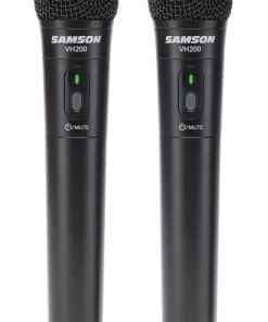 Mejor dos que uno. Cada micrófono de mano presenta el elemento de micrófono Q6 de Samson, que proporciona un sonido nítido y claro y un rendimiento inalámbrico VHF confiable para karaoke en casa, presentaciones en vivo, educación, lugares de culto y otras aplicaciones de doble intérprete. Operación VHF: El Stage 200 opera en el fiable espectro de frecuencia VHF, que se ha vuelto significativamente menos congestionado con el avance de la televisión digital. La operación VHF también proporciona a ambos transmisores de micrófono una autonomía excepcional de hasta 12 horas a través de dos pilas AA (no incluidas). Rendimiento versátil: Con el resistente receptor de metal SR200, el Stage 200 está diseñado para máxima durabilidad y versatilidad. Su panel trasero ofrece dos salidas de 1/4″, así como una salida XLR Balanceada, para conectar a un mezclador dedicado o altavoz PA activo. Las salidas de 1/4″ envían cada canal por separado, mientras que la salida XLR envía una mezcla de ambos. Los controles de volumen en el panel frontal de cada canal te permiten encontrar el equilibrio perfecto entre dos intérpretes. Configuración sencilla: Samson se ha dedicado a impulsar la innovación inalámbrica, siempre esforzándose por hacer que sea más fácil para los intérpretes de todo el mundo cortar el cordón. La operación de frecuencia fija del Stage 200 proporciona una configuración instantánea. Simplemente conecta el receptor y enciende tus transmisores para experimentar un rendimiento inalámbrico de calidad. Un rango de operación de 200′ brinda una libertad amplia para cualquier presentador o dúo de intérpretes. Sistema inalámbrico Stage 200 Sistema inalámbrico de doble canal VHF Diseño de frecuencia fija para configuración instantánea Dos bandas de frecuencia (dependientes de la región) admiten hasta cuatro intérpretes simultáneamente Cable de audio de 1/4″ y adaptador de corriente incluidos Receptor inalámbrico SR200 Chasis de metal resistente Controles de volumen dedicados para cada canal Salidas de 1/4″ para enviar cada canal al mezclador Salida XLR balanceada para conexión directa a altavoz PA Micrófonos de mano Q6 Dos cápsulas de micrófono dinámico Q6 cada una ofrece hasta 12 horas de duración de la batería mediante dos pilas AA (no incluidas) Rango de operación de 200′ (línea de visión) Obtén tu Samson Stage 200.