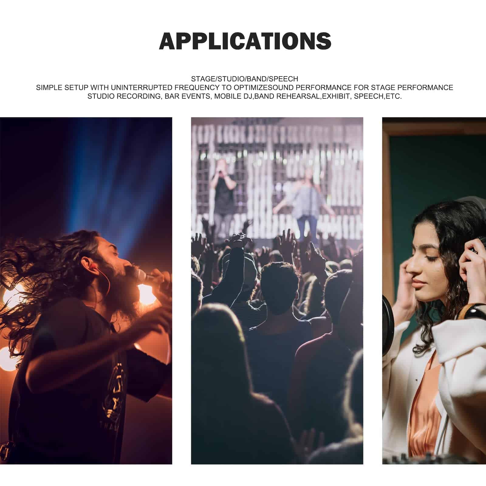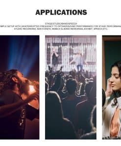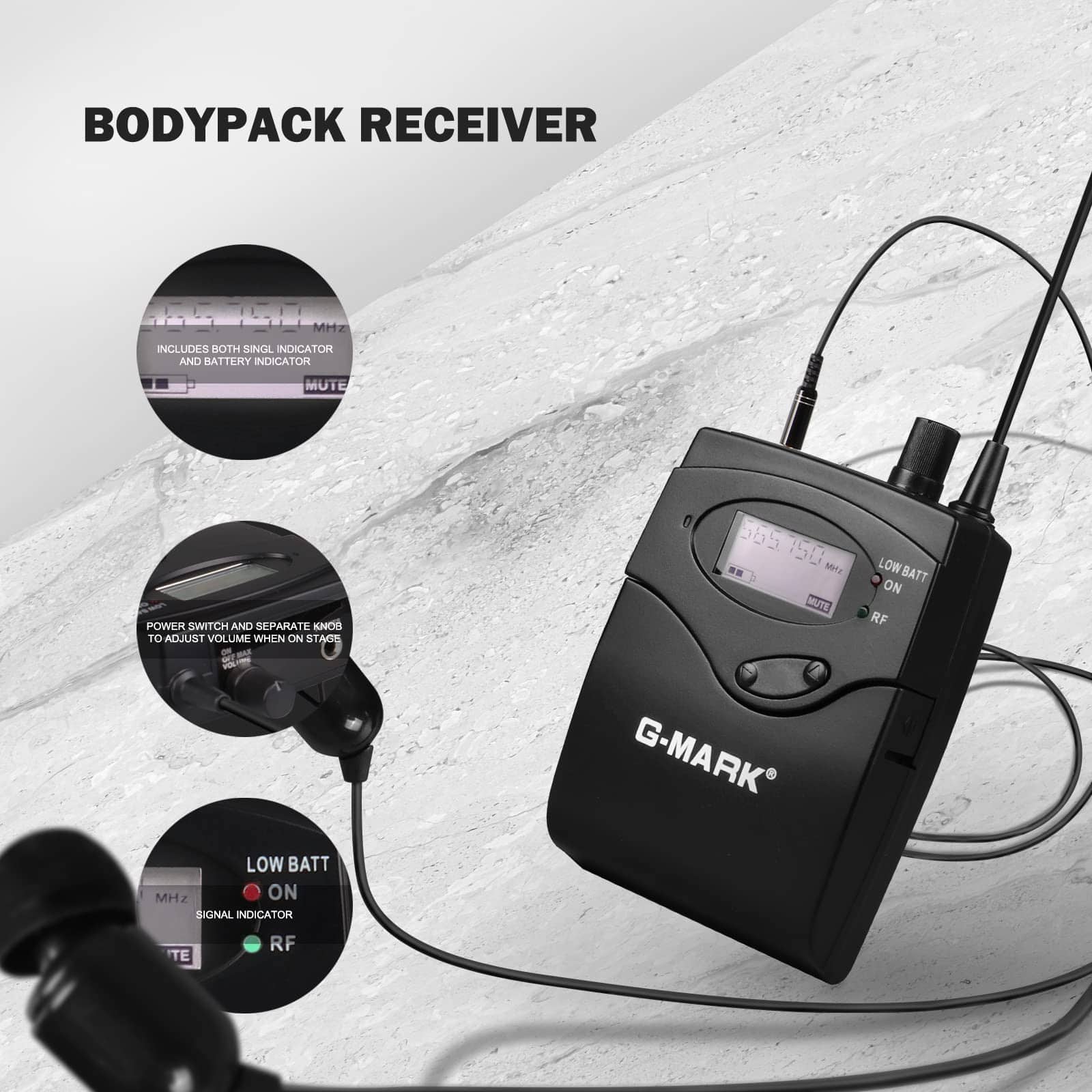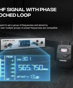 1. Hecho de material de metal resistente, rendimiento de RF mejorado hasta 200 pies. El receptor de cuerpo de doble antena diversidad adopta tecnología avanzada de procesamiento de señal digital para aumentar la señal y eliminar el ángulo muerto de recepción. Permite a los usuarios moverse libremente en espacios abiertos con una distancia de funcionamiento de 160 pies – 200 pies. El lanzador está hecho de material de metal resistente. Es la mejor opción para monitoreo inalámbrico en oído. 2. Sistema de monitoreo inalámbrico expandible. Cantidad ilimitada, se pueden agregar tantos bodypacks como se desee, que se pueden utilizar para tareas de monitoreo de escenario de todo el equipo, los auriculares de alta calidad proporcionan un sonido puro y un rendimiento mejorado. Es perfecto para todo tipo de eventos de retorno inalámbrico al escenario, monitor de guitarra, actuaciones, grabaciones de estudio, exposiciones, presentaciones, coaching y más. Se puede instalar en unidades de bastidor estándar. 3. 40 canales en el aire. Este sistema de monitoreo inalámbrico tiene un total de 40 canales, con el rango de afinación más amplio, transmisión RF ultra lineal y una señal más fuerte que cualquier otro sistema de monitor de oído. Respuesta de frecuencia amplia de 20Hz-25KHz, rango dinámico de 107 dB. 4. Banda UHF 550-580Mhz sistema inalámbrico de monitor en oído crea tu sistema de monitor personal o de equipo. transmisión de señal inalámbrica no comprimida, bajo ruido y latencia. Proporciona una respuesta de frecuencia suave con cualquier auricular. 5. Compra con confianza garantía de un año, cualquier pregunta haga clic en las opciones «SU PEDIDO» haga clic en «contactar al vendedor». Lista de embalaje: 1 Transmisor de sistema en oído inalámbrico, 1 Receptor de bodypack UHF, 1 cable de audio de 6.35mm. 1 Auricular en oído, 1 Adaptador de corriente, 1 Antena, 1 Manual.