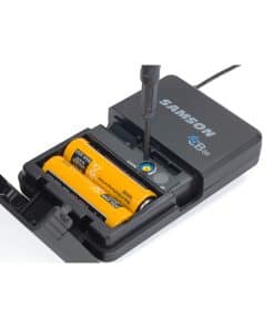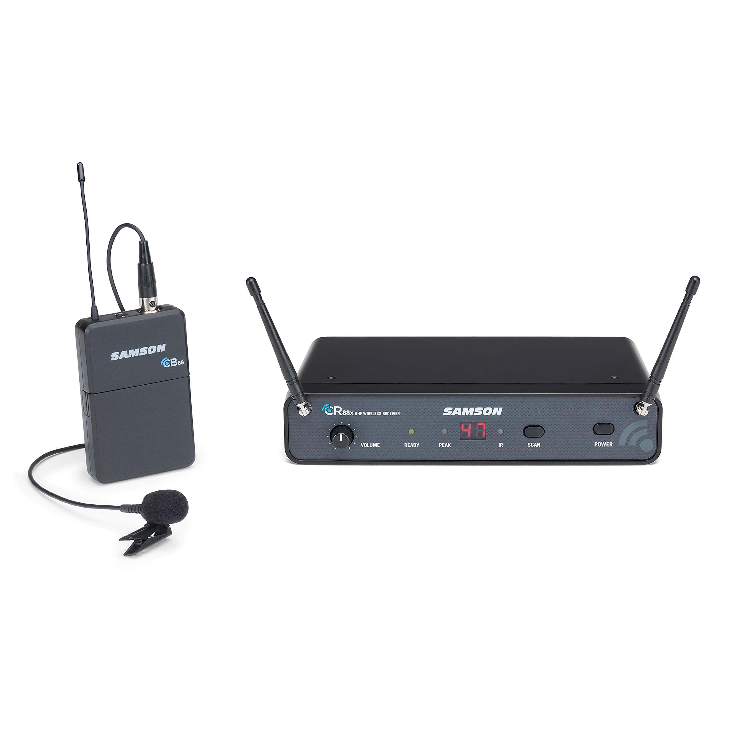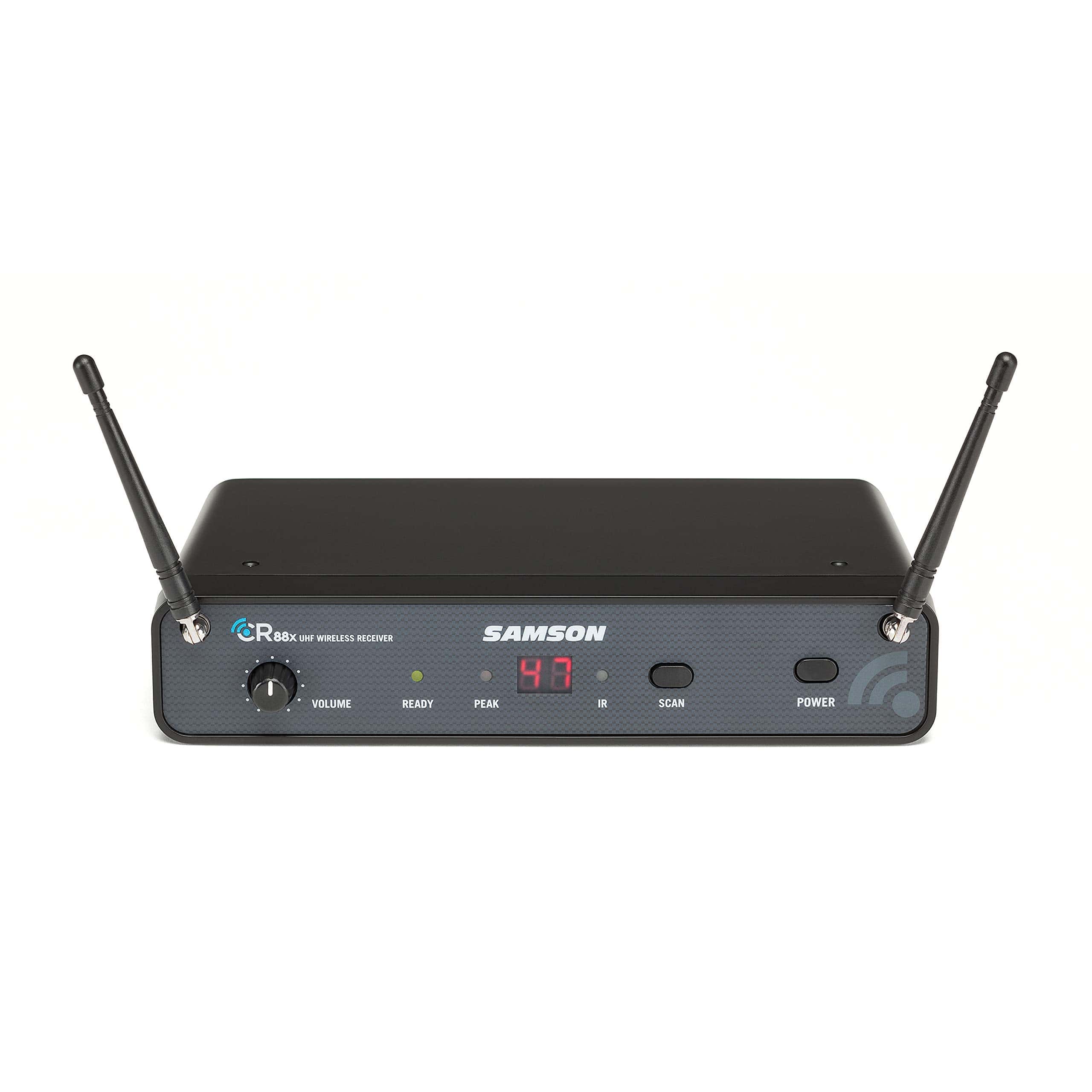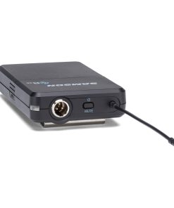 El sistema inalámbrico de presentación Samson Concert 88x combina audio de calidad profesional con una extrema facilidad de uso. El receptor CR88x montable en rack del sistema proporciona 100 frecuencias inalámbricas en un ancho de banda de 25 MHz y utiliza un escaneo de un solo toque para seleccionar automáticamente el canal más claro disponible en su espacio de actuación. El diseño de diversidad verdadera del receptor minimiza las interrupciones mientras la tecnología de clave tonal y auto-mute evitan ruidos no deseados o interferencias cuando el transmisor está fuera de rango. Concert 88x proporciona audio cristalino y recepción inalámbrica impecable dentro de un rango de 300 pies (línea de visión). El receptor CR88x está diseñado para integrarse fácilmente en casi cualquier amplificador, sistema de sonido o dispositivo de grabación, proporcionando conexiones de audio XLR balanceadas y 1/4 desbalanceadas. La carcasa de medio rack y el kit de montaje en rack incluido permiten que un solo receptor CR88x o múltiples unidades se instalen en un rack portátil o en un lugar permanente. El transmisor de paquete CB88 tiene un interruptor de silencio silencioso, que evita ruidos abruptos al silenciar o desactivar el sistema y control de ganancia ajustable para un rendimiento óptimo. El CB88 se ajusta de forma segura en el cinturón, cinturilla del pantalón o incluso en un bolsillo del artista, y proporciona hasta ocho horas de funcionamiento continuo con un par de pilas AA. El sistema incluye el micrófono de solapa omnidireccional Samson LM5 que proporciona una excelente respuesta, incluso cuando la cabeza del presentador está girada hacia un lado o habla cara a cara con otra persona. Utilice el clip conveniente para sujetar el micrófono directamente a una corbata, solapa o doblez de tela, etc.