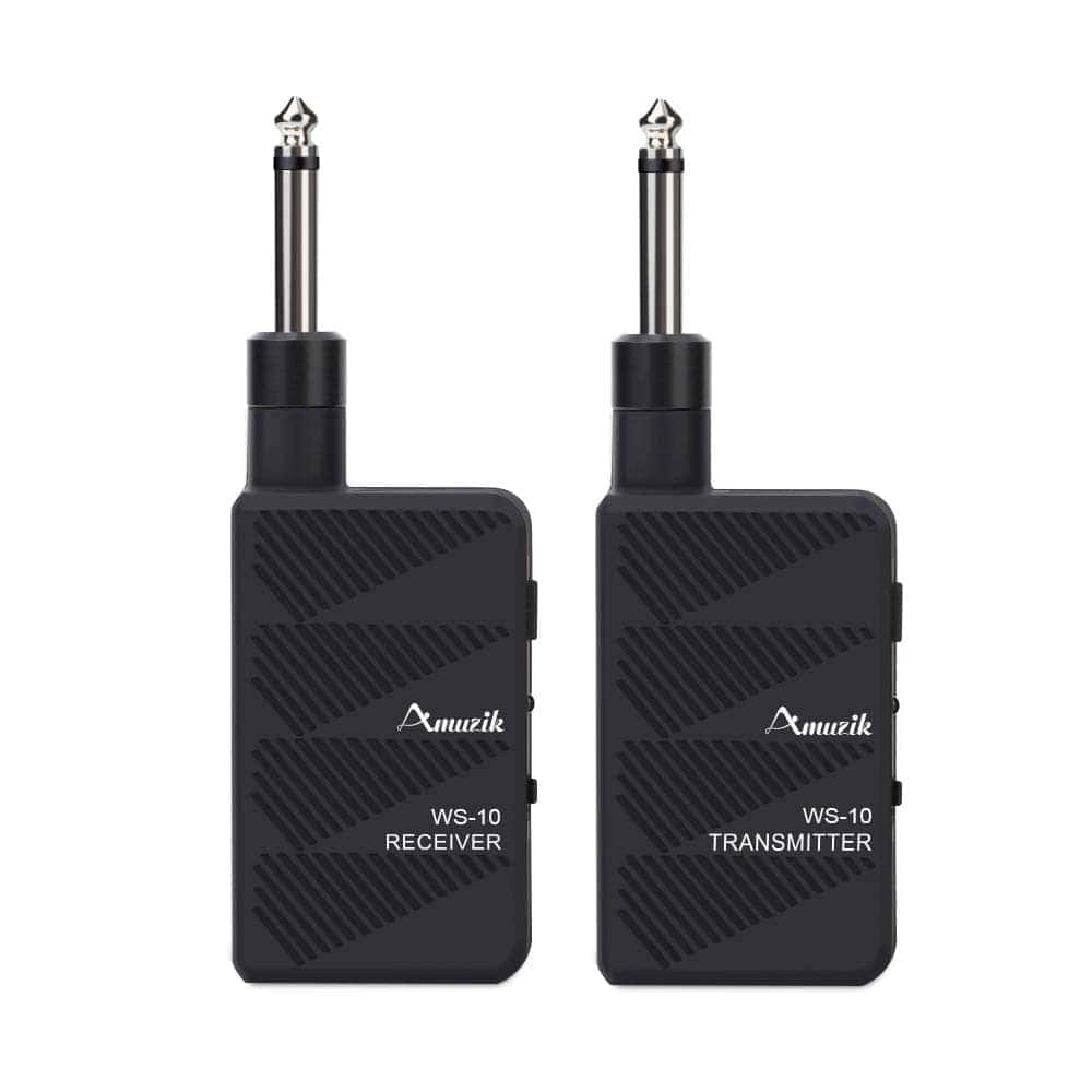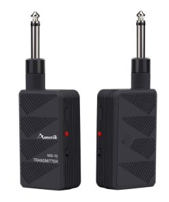Especificaciones: Tono de alta calidad, tasa de muestreo 48k,16bit, transferencia de audio sin comprimir de 2.4G. La distancia de transmisión es de aproximadamente 30 metros. Utilizado en guitarras eléctricas y productos acústicos. Batería de litio de 600mAh, puerto USB para carga. Soporta transmisión uno a uno, 6 transmisores y receptores trabajan al mismo tiempo. Señal de ultra baja demora Relación Señal-Ruido: 105DB Paquete/Garantía: 1 x Amuzik-WS-10; 1 x Manual de Usuario; 1 año de reembolso o reenvío incondicional. Prometemos un servicio al cliente amigable y satisfacción del 100%.