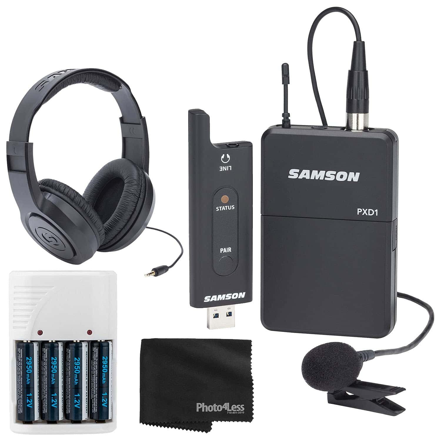 El Sistema inalámbrico digital USB XPD2 de Samson es un sistema inalámbrico portátil de 2.4 GHz que incluye un transmisor de petaca y un micrófono de solapa, con un receptor tipo USB. Puede utilizarse para capturar audio en transmisiones, presentaciones, aplicaciones de sonido en vivo y más. En la caja: Cable de extensión USB Garantía limitada de 12 meses Kit incluye: Sistema inalámbrico digital USB Samson Stage XPD2 con micrófono de solapa Auriculares estéreo Samson SR350 4 pilas AA y cargador blanco Paño de limpieza negro de Photo4Less