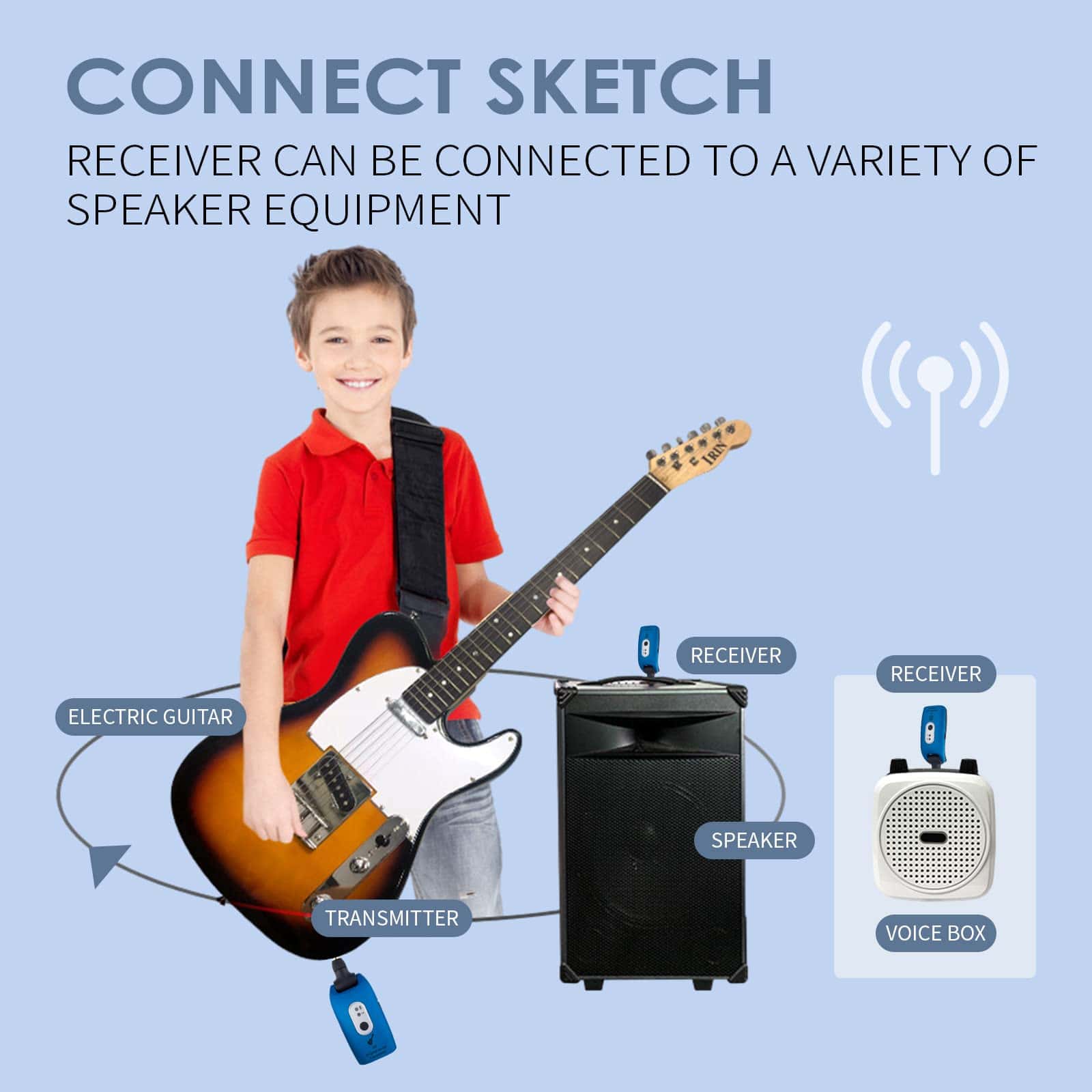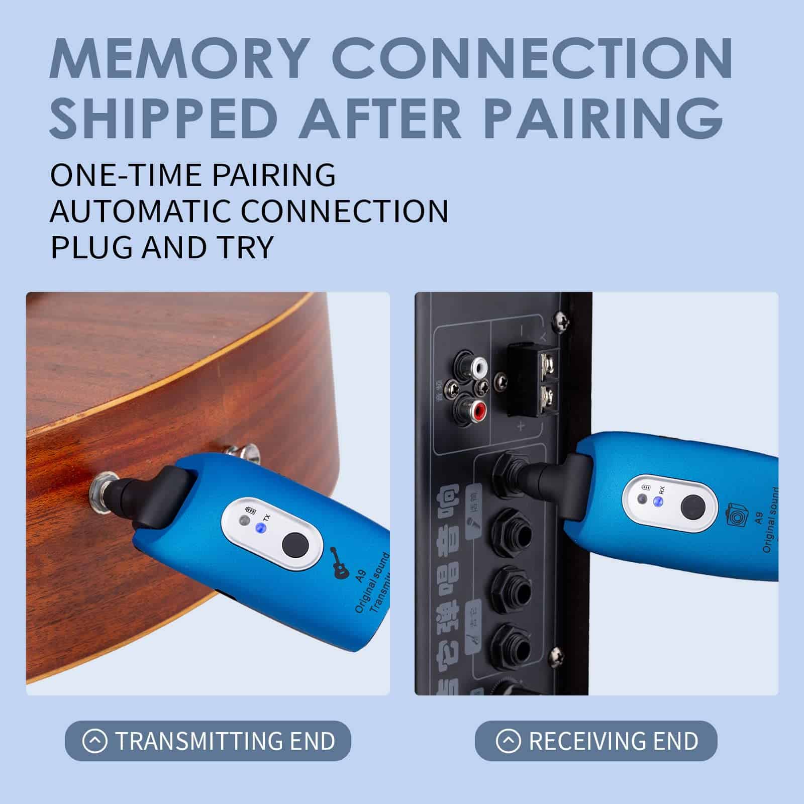 Sistema Inalámbrico para Guitarra Transmisor Receptor 2.4GHz con Batería Recargable Incorporada Digital para Guitarra Electríca. Conéctese de forma inalámbrica a su guitarra eléctrica con este sistema de transmisor y receptor. Con una conexión automática y emparejamiento fáciles, este sistema le permite tocar sin la molestia de cables. La transmisión estable y clara proporciona una calidad de sonido excepcional sin ruido ni latencia. La batería recargable de larga duración garantiza horas de uso ininterrumpido. Ampliamente utilizado en diversos instrumentos musicales para una experiencia sin cables sin igual.