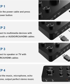 4. Calidad de Sonido Clara y Prístina El receptor tiene 5 diales giratorios para ajustar rápidamente el volumen de la música, el micrófono, el eco y el tono a su nivel deseado. Puede configurar diferentes parámetros usted mismo para reflejar su estilo específico y obtener un sonido verdadero óptimo claro y robusto.