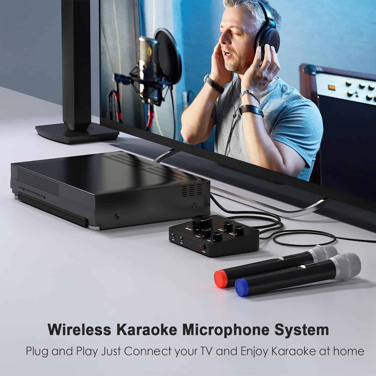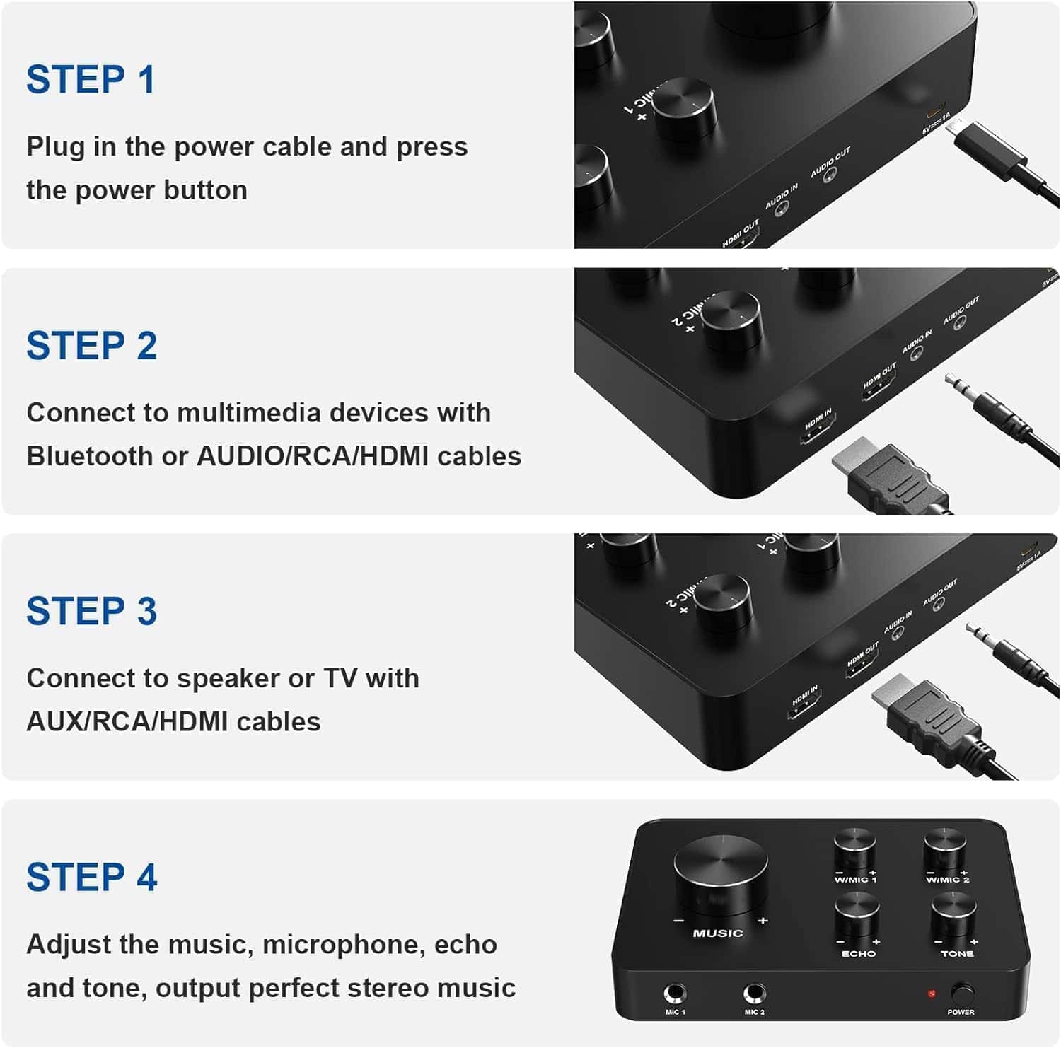 2. Micrófono de Karaoke para TV El set de micrófono de Karaoke emite las señales de audio mezcladas a Smart TV, sistema de cine en casa u otro sistema de sonido a través de HDMI o Aux 3.5mm in/out. Ideal para karaoke en casa, música de DJ, fiestas en casa, escuela e iglesia, puede disfrutar fácilmente de karaoke instantáneo.
