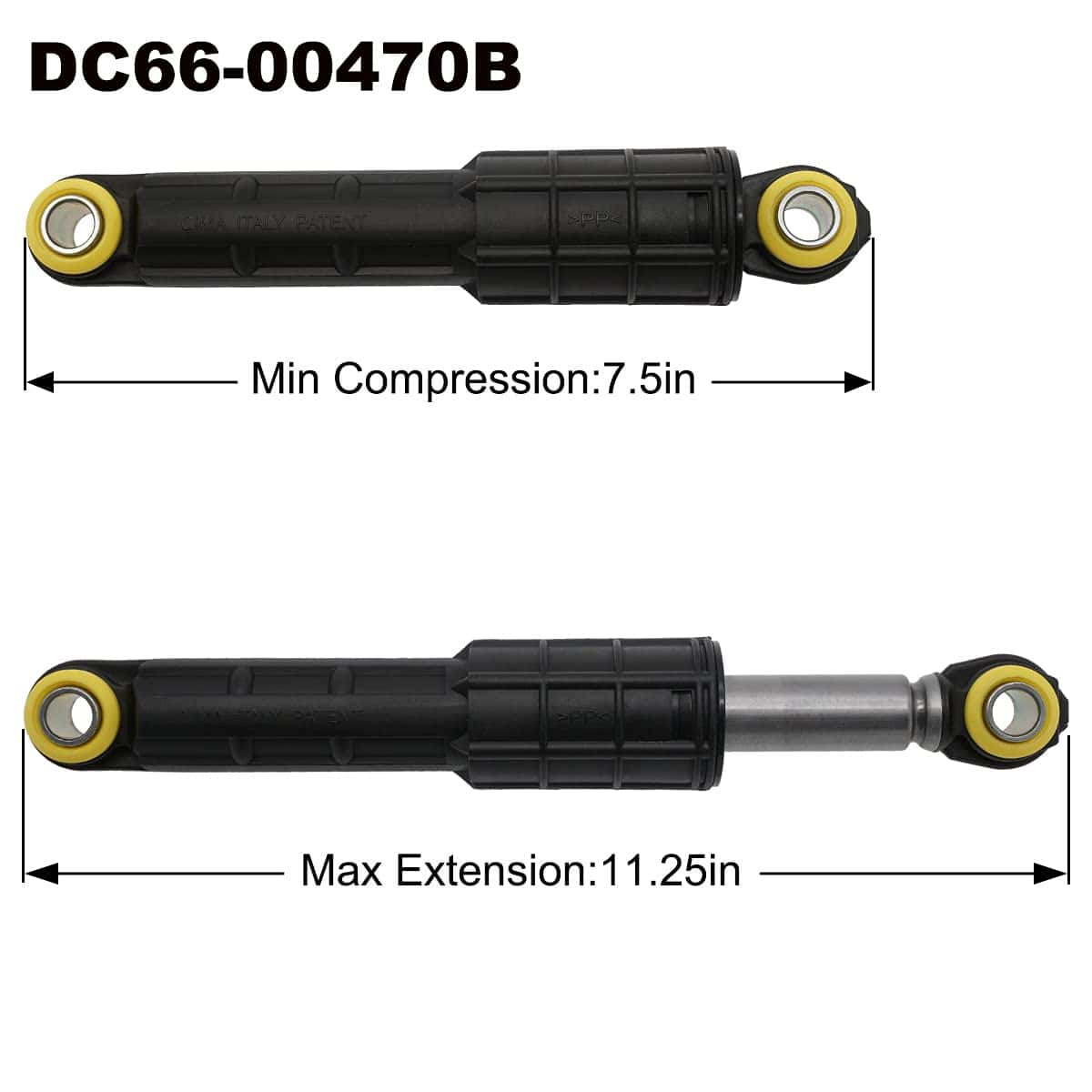 Amortiguadores de lavadora Samsung DC66-00470A 2 piezas DC66-00470B 2 piezas Número de parte: DC66-00470A Reemplazo para los números AP4206426, DC66-00650D, 2020946, PS4212219. Se adapta a algunos modelos de lavadoras de carga frontal de Samsung que comienzan con WF20, WF21, WF32, WF33, WF35, WF39, WF40, WF41, WF42, WF43, WF44, WF45, WF46, WF50, WF51, WF52, WF56, WV55 y WV60. El amortiguador DC66-00470A mide 7-5/8 pulgadas de largo y tiene una carcasa negra; usa una llave de 13 mm para quitar o instalar los pernos de montaje del amortiguador. Reemplaza los amortiguadores si los resortes de suspensión están intactos y el tambor de la lavadora golpea contra el gabinete de la lavadora durante el ciclo de centrifugado. Número de parte: DC66-00470B Reemplazo para los números AP4456255, DC66-00650C, PS4212220. Se adapta a algunos modelos de lavadoras de carga frontal de Samsung que comienzan con WF33, WF35, WF39, WF40, WF41, WF42, WF43, WF45, WF50, WV55 y WV60. El amortiguador DC66-00470B mide 7-3/4 pulgadas de largo y tiene una carcasa negra y amarilla. El amortiguador DC66-00470B es un amortiguador trasero. Servicio al Cliente Siwdoy se compromete a brindar el mejor servicio al cliente a cada cliente. Si tienes alguna pregunta, no dudes en contactarnos. Los nombres y logotipos de marca de Samsung son marcas registradas de sus respectivos dueños. Cualquier uso del nombre de marca de Samsung o designación de modelo para este producto se hace únicamente con el propósito de demostrar la compatibilidad.