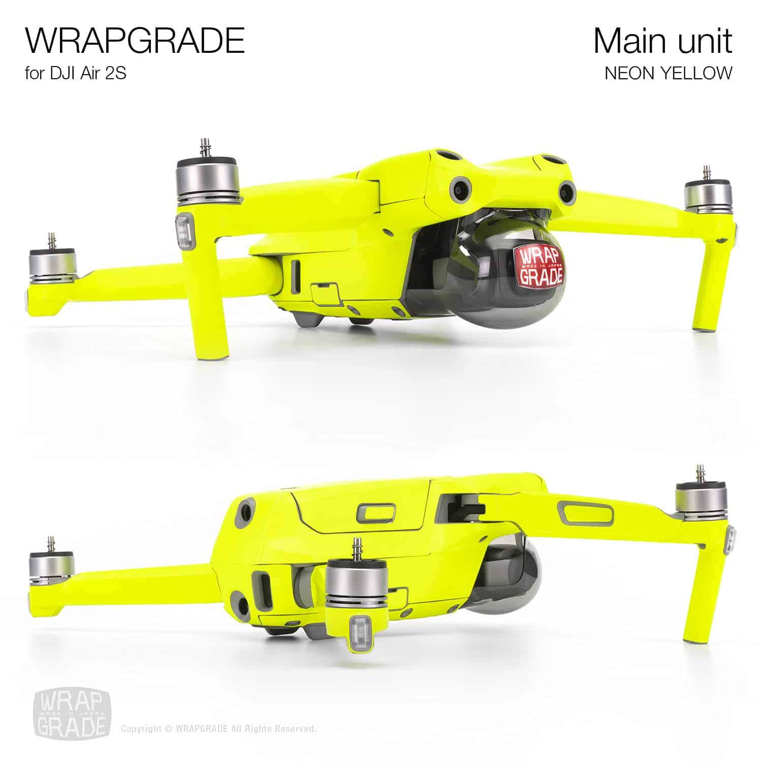 Skin Wrapgrade para Unidad Principal Compatible con DJI Air 2S en color amarillo neón. Este skin de vinilo está diseñado a la perfección para proteger y personalizar tu DJI Air 2S. Haz que tu dron destaque con tu color favorito y añade un toque de personalidad única. Utilizamos películas de vinilo de alta calidad para automóviles de la marca 3M, lo que garantiza durabilidad y resistencia. La aplicación del skin es sencilla y no requiere herramientas especiales ni secador de pelo. Un manual de instrucciones en inglés está incluido para facilitar el proceso. Además, podrás encontrar videos instructivos de «Cómo aplicar» en YouTube. Con Wrapgrade, realizamos todo el proceso de producción desde el diseño hasta el empaque en Japón, asegurando la calidad y satisfacción del producto final.