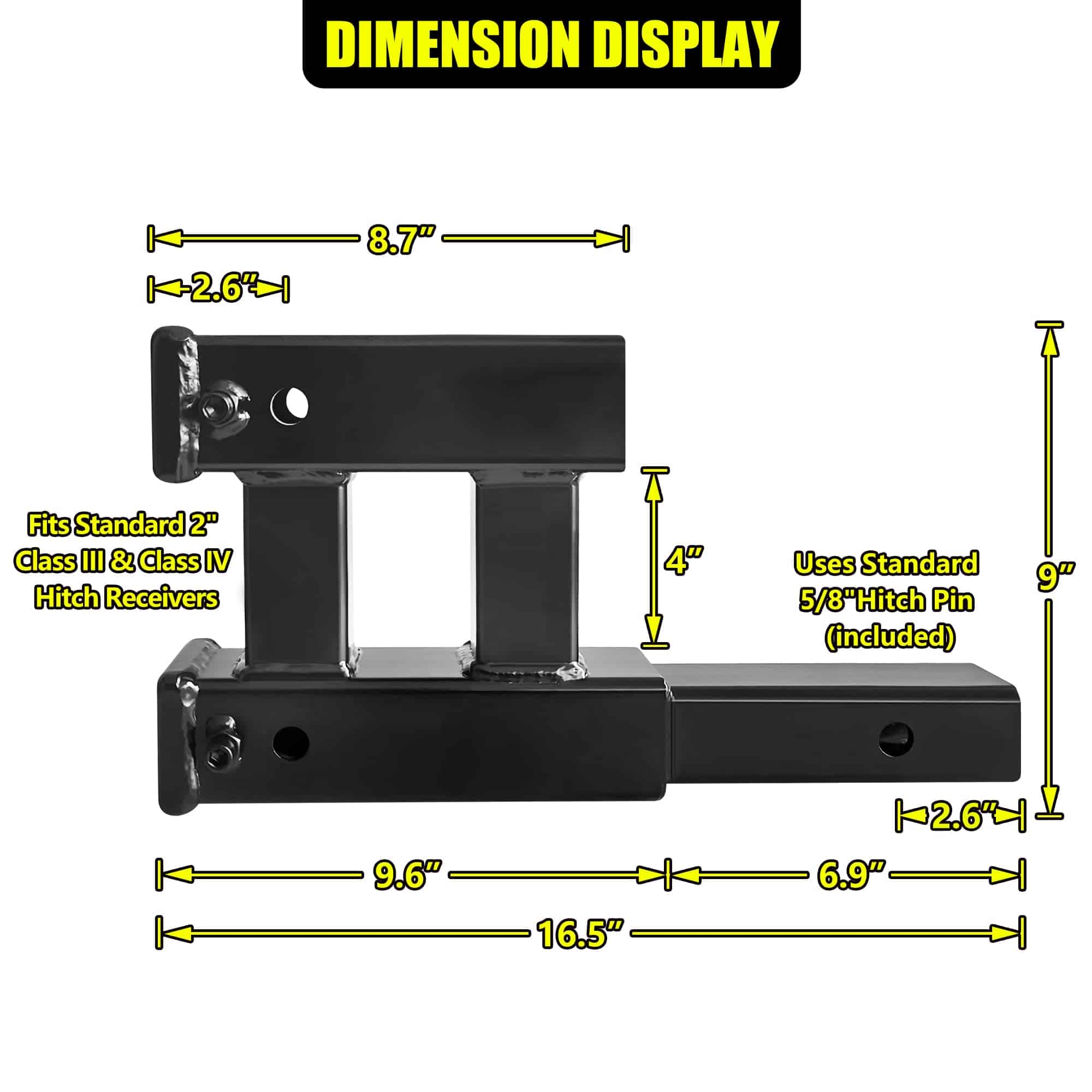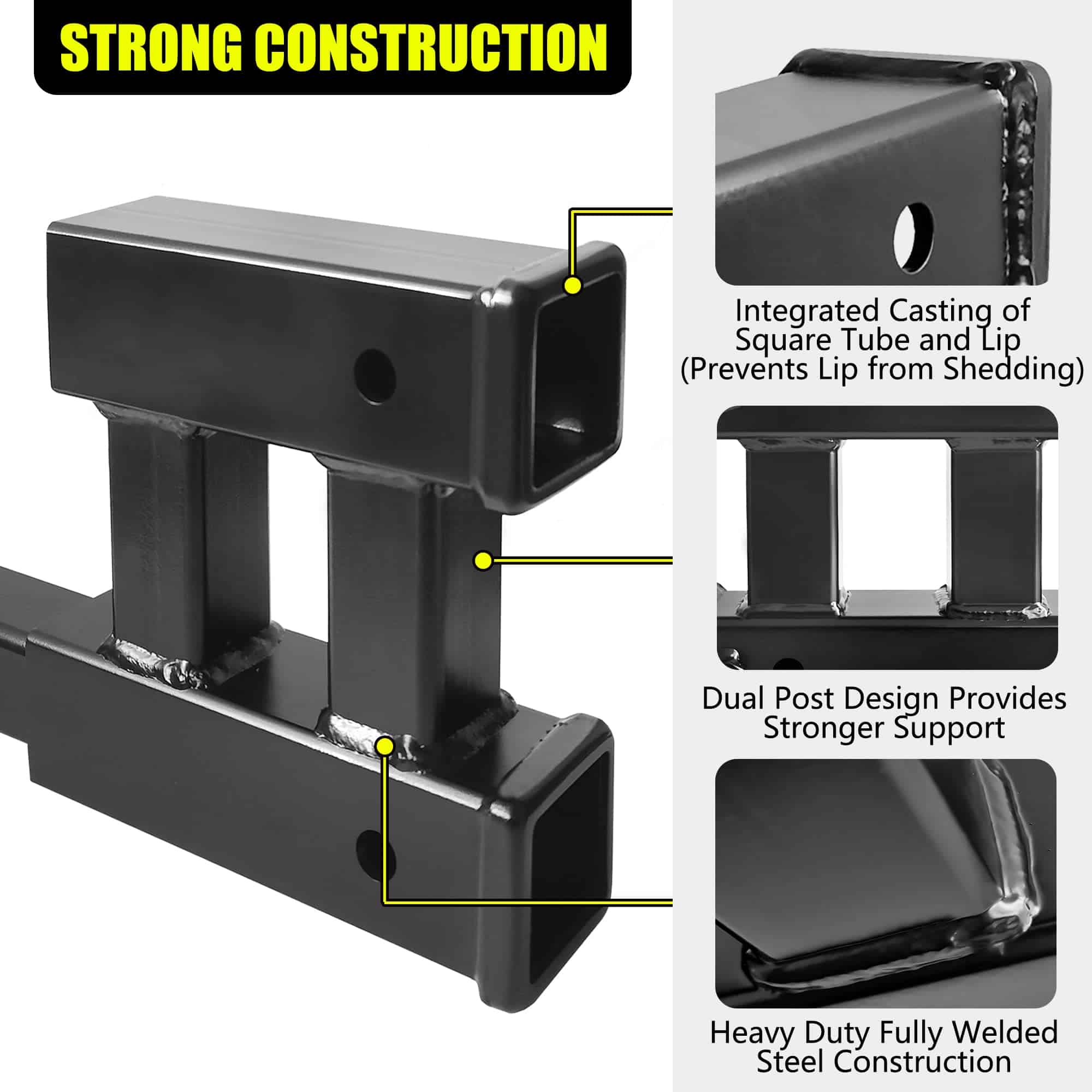 5. PAQUETE INCLUIDO: 1 x Extensor de receptor doble, 1 x Pasador de 5/8″ para receptor, 1 x Clip