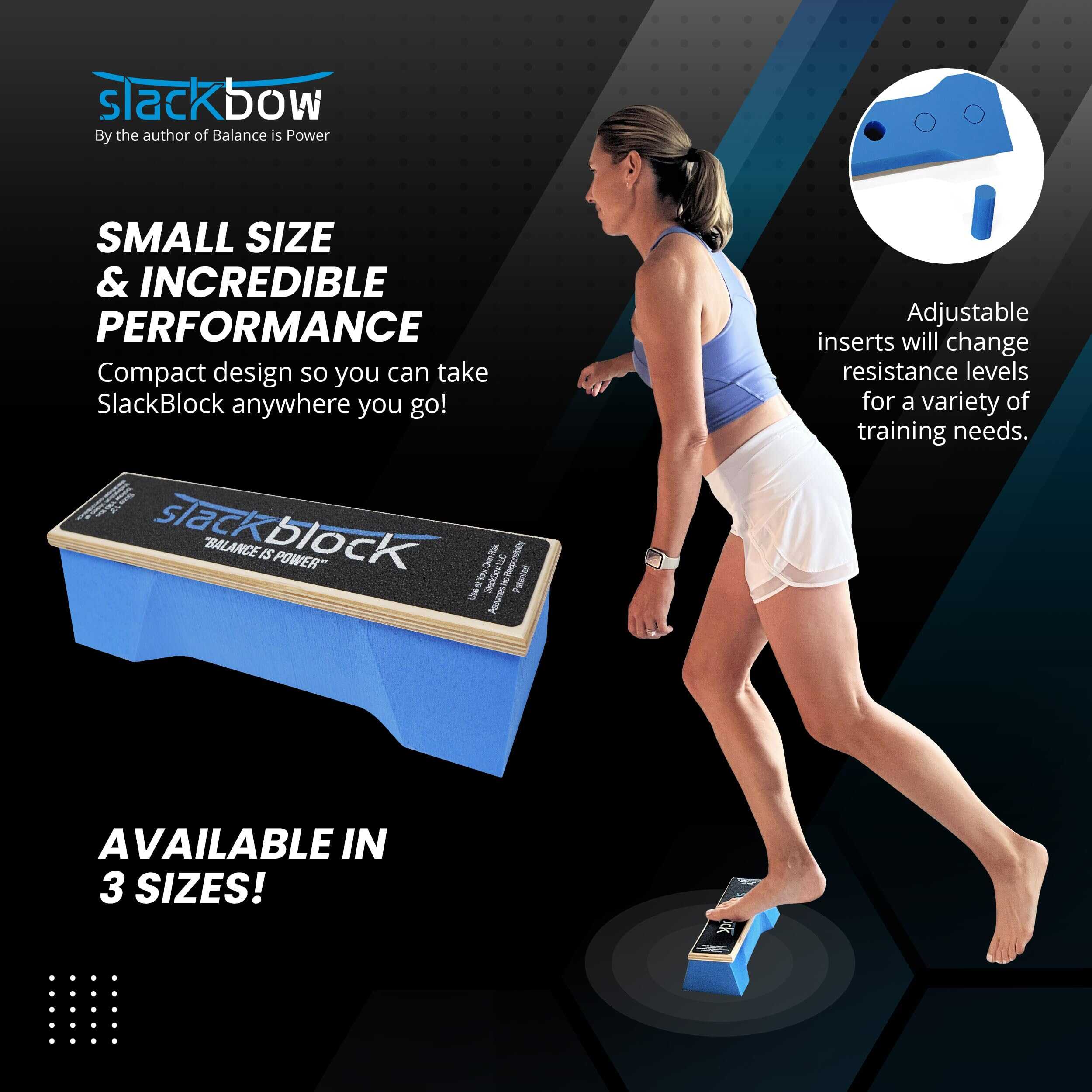 El Mejor Dispositivo de Entrenamiento de Equilibrio. Tamaño Pequeño – Rendimiento Increíble. Es pequeño y no parece gran cosa, pero te sorprenderá el desafío de equilibrio. Luego, después de entrenar durante tan solo 4 horas, te quedarás asombrado por la mejora en tu agilidad, coordinación, puntería y porcentaje de victorias. Utilizado por atletas profesionales y equipos universitarios. SlackBlock es el simple pero increíblemente efectivo entrenador de equilibrio atlético. Todo equilibrio atlético se encuentra en un solo pie. Ningún deporte se juega con el equilibrio estático y el peso distribuido equitativamente en ambos pies. El SlackBlock viene con el Método de Entrenamiento patentado SlackBow. Entrenar en el SlackBlock durante solo unos minutos cada dos días te sorprenderá con un rendimiento mejorado en tu deporte.
