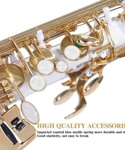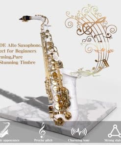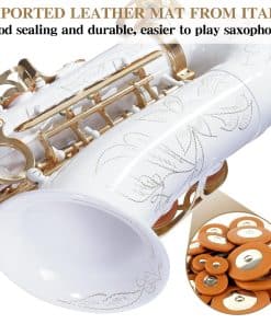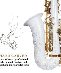 Material Superior & Craft Electrophoretic — El cobre dedicado del Instrumentos Musicales, el revestimiento de pintura electforética es uniforme, más duradero. El clásico saxofón plateado y los exquisitos patrones tallados a mano hacen que el saxofón alto sea más perfecto.