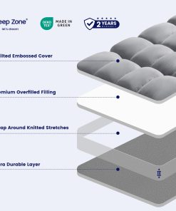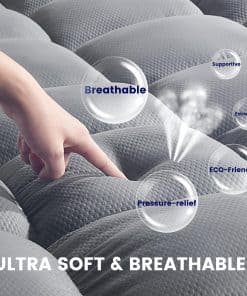 Colchón Topper Extra Grueso para California King de SLEEP ZONE. Utilizamos fibras de ultrafinas de 120 gsm en la superficie de descanso para proporcionar una sensación fresca y transpirable. Relleno con fibras espirales de 5D de 800 gsm, más gruesas que la mayoría en el mercado, el relleno de fibra mantiene una suavidad y elasticidad excepcionales, lo que hace que este colchón topper sea excepcionalmente esponjoso. Crea un ambiente de descanso extraordinario. El diseño único de acolchado en caja asegura que el relleno esté fijado de forma segura en cada caja, evitando que se desplace fácilmente. Los colores elegantes y simples complementan bien el dormitorio, dándole una apariencia fresca y renovada. Si tu colchón es demasiado firme, agregar nuestra colchoneta topper es una excelente solución. Añade suavidad y comodidad a los colchones de espuma viejos y duros. Esta también es una forma económica de prolongar la vida de los colchones viejos sin necesidad de sustituirlos por otros nuevos y caros. Bolsillo Profundo y Fácil Cuidado: Estiramiento acolchado para ajuste (8″-21″): El bolsillo de la falda de punto se estira hasta 21 pulgadas de profundidad, ajustándose fácilmente a la mayoría de los colchones. Un ribete elástico deportivo de 1.6 pulgadas asegura firmemente tu colchón topper en su lugar, y su excelente elasticidad hace que sea fácil de colocar y quitar. Esto garantiza el sueño más reparador y restaurador. Para un cuidado óptimo, lavar a máquina en agua fría. Evitar el uso de lejía y secar en secadora a baja temperatura para mantener la calidad y apariencia de la tela. Certificación OEKO-TEX – SLEEP ZONE tiene más de 40 años de experiencia en el diseño y fabricación de ropa de cama. Nuestros productos están certificados según el estándar 100 de OEKO-TEX. Puedes comprar con confianza.