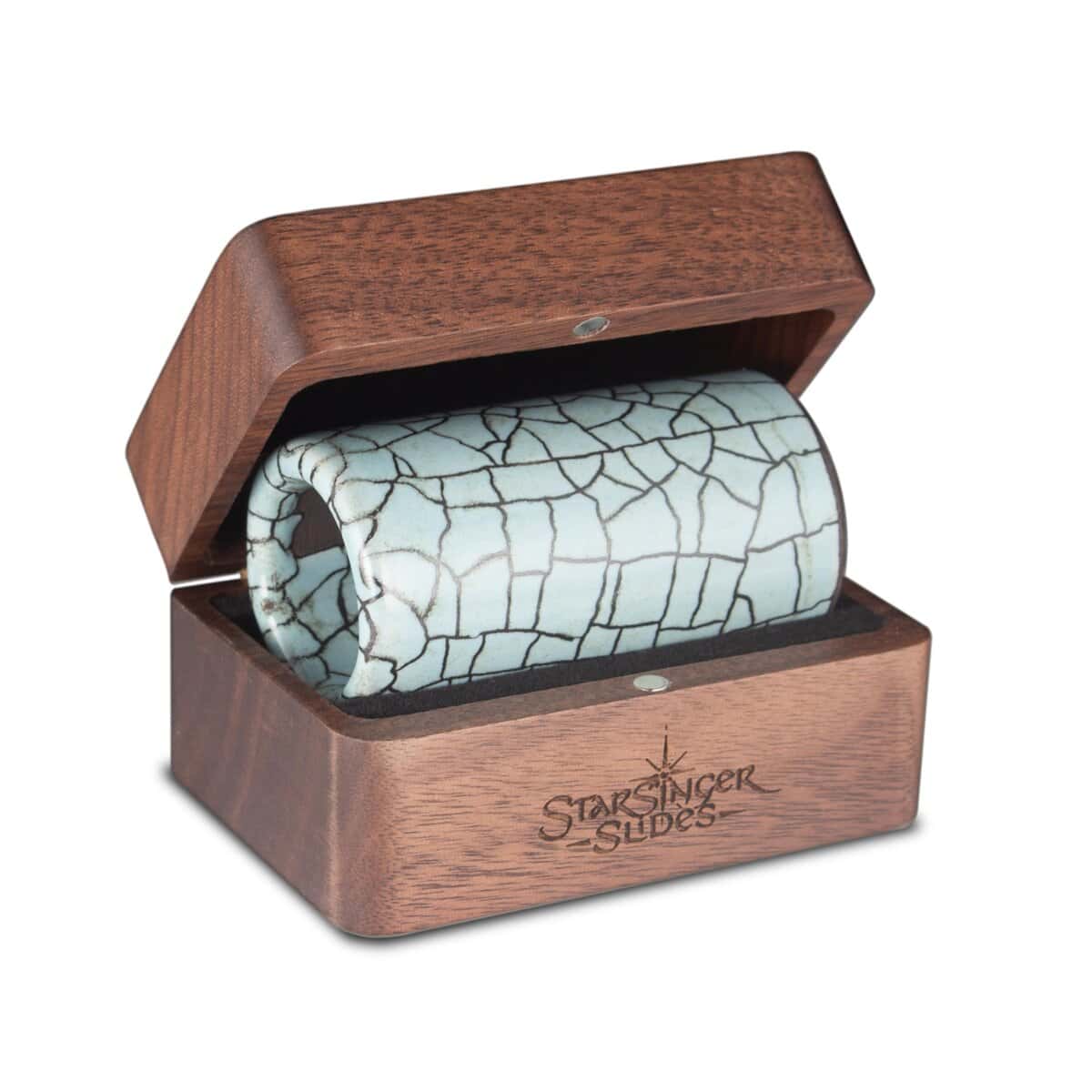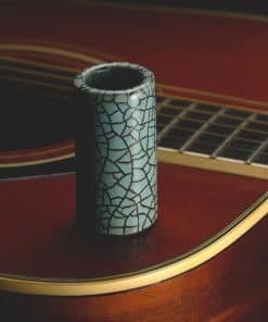 Cada slide de guitarra azul suave de Star Singer Slides es una obra maestra única con un acabado impresionante gracias a nuestra técnica de esmalte envejecido exclusiva de la familia. Diseñado para ofrecer un tono rico y resonante, este slide está creado para producir notas vibrantes y sostenidas con un equilibrio y claridad superiores, ideal para la interpretación de la guitarra con slide. Para garantizar una durabilidad máxima, nuestros slides son horneados tres veces, lo que asegura un uso duradero con un acabado de alto brillo y lujoso. Además, cada slide viene con dos tiras de neopreno adhesivas para un ajuste personalizado para un ajuste perfecto en tu dedo. La superficie sin esmaltar del interior proporciona un agarre cómodo y control mejorado, permitiendo una reproducción precisa. El estuche duro de nogal a medida ofrece una presentación de lujo para almacenar y transportar el slide de forma segura, convirtiéndolo en el regalo perfecto para los guitarristas. Además, la funda de cuero estilizada y funcional se adapta a los cinturones o correas de guitarra para mantener el slide accesible fácilmente. Con un acabado único en azul suave con esmalte envejecido negro metalizado, este slide combina atractivo artístico con un rendimiento de primera calidad. Disfruta de una garantía de por vida con nuestra garantía de reemplazo, que ofrece tranquilidad; si se rompe, lo reemplazaremos por una pequeña tarifa de manipulación. Aplican términos y condiciones. Ya seas un principiante o un profesional experimentado, los slides de cerámica de Star Singer Slides son perfectos para todos los niveles de habilidad, gracias a su tono encantador y su facilidad de reproducción.