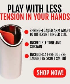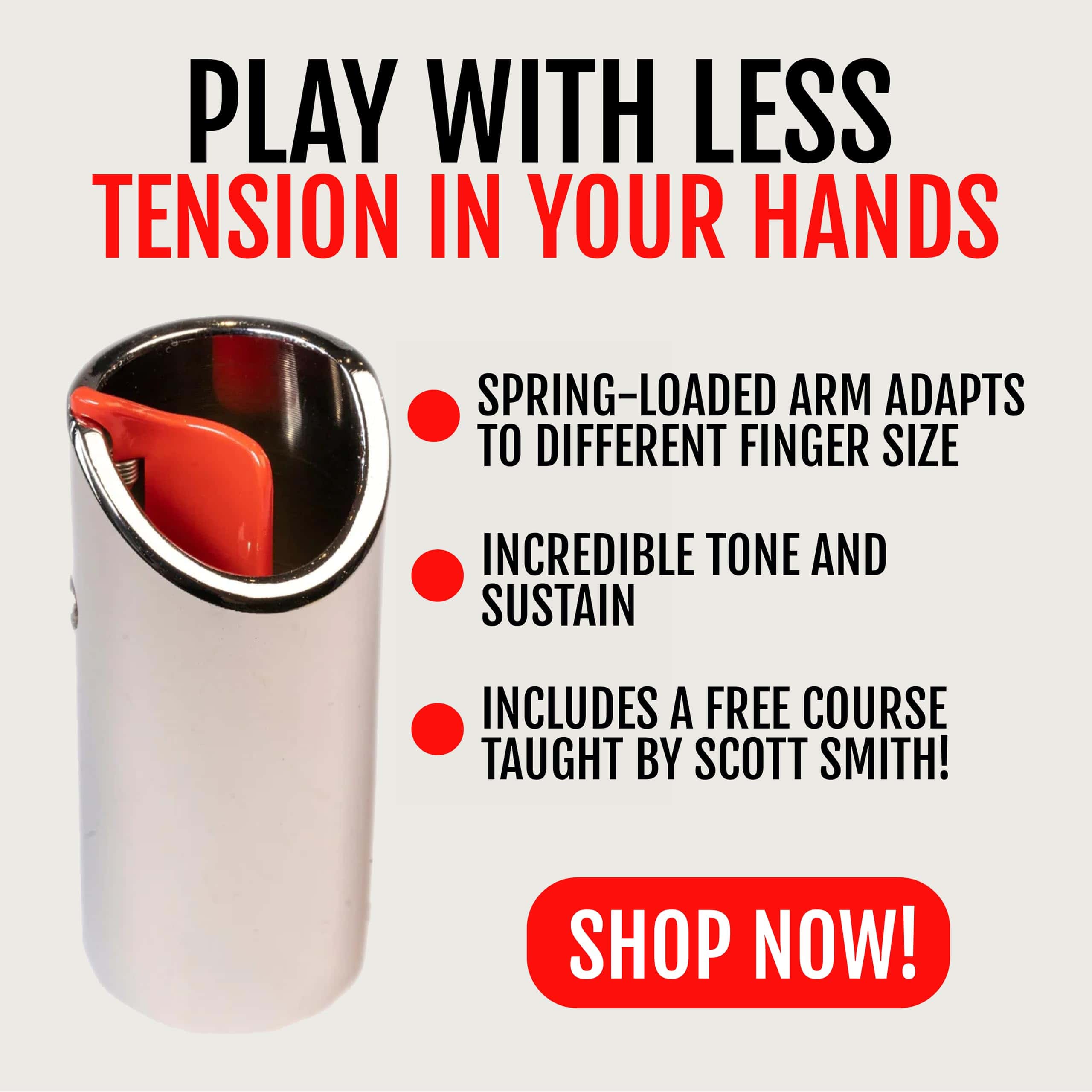 2. TAMAÑO PERSONALIZABLE: Nuestros slides de guitarra niquelados están diseñados para adaptarse a tu dedo individual. Debido a que los slides con resorte se ajustan tan bien, permiten que tu mano se relaje y no tienes que preocuparte por que los slides se muevan mientras tocas, lo que resulta en menos tensión en la mano.