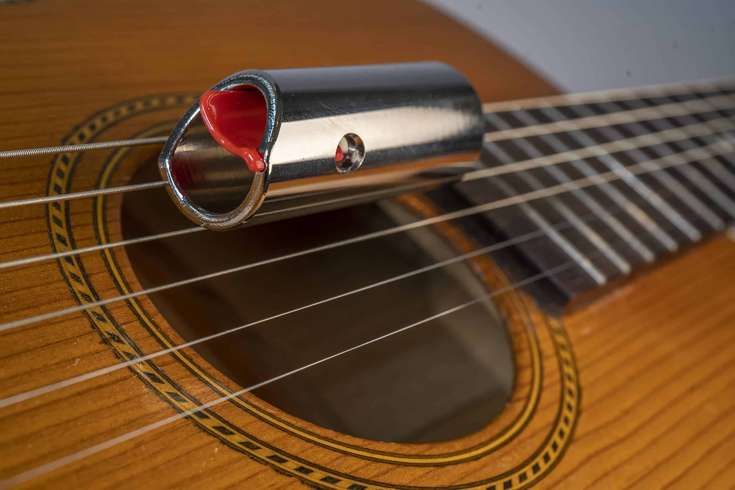 3. LA INNOVACIÓN SE UNE A ADAPTABILIDAD: El slide de guitarra Black Mountain es un slide de tamaño completo niquelado que tiene un accesorio de resorte rojo. Se adapta universalmente a diferentes tamaños de dedo y hace el trabajo de asegurar el slide a tu dedo.