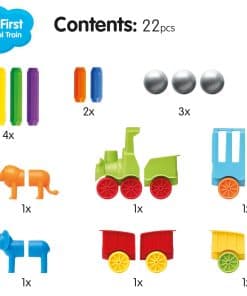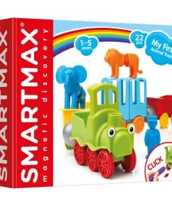 SmartMax My First Animal Train está diseñado para niños de 18 meses a 5 años, ofreciendo una introducción temprana, segura y divertida al descubrimiento magnético. Construye fácilmente el tren de animales y juega con los animales y el conductor. Conduce alrededor con los animales en el tren o juega con cada uno por separado. Las partes de gran tamaño del tren y los animales simplemente se ensamblan en las barras, haciéndolos ideales para manos pequeñas. SmartMax My First Animal Train incluye 22 piezas y es compatible con todos los demás sets de SmartMax.