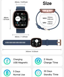 Este smartwatch Fitness 2025 Ver. es una excelente opción para mantener un estilo de vida saludable y activo. Con funciones avanzadas como llamadas telefónicas integradas, monitoreo de frecuencia cardíaca y oxígeno en sangre, rastreo de actividad durante todo el día y análisis del sueño, este reloj inteligente le brinda todas las herramientas necesarias para mejorar su bienestar. Además, su diseño elegante y personalizable lo convierte en un accesorio perfecto para hombres y mujeres que desean mantenerse conectados y en forma. Disfrute de la comodidad y la funcionalidad que este reloj inteligente puede ofrecer, lo que le permite estar siempre informado y motivado para alcanzar sus metas de salud y fitness.