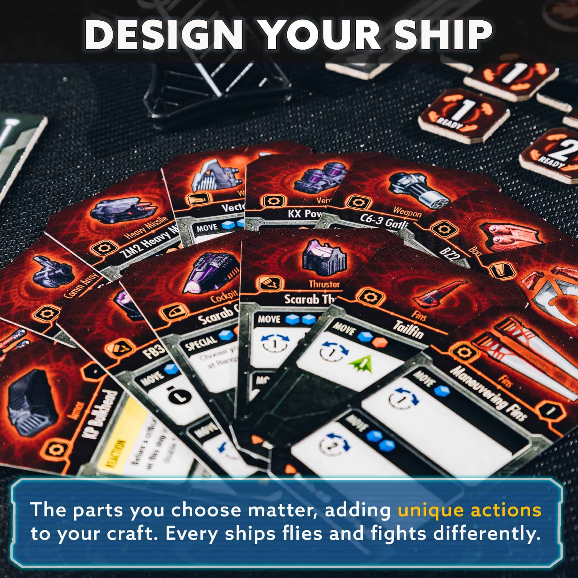 2. DISEÑO: La Caja de Inicio incluye más de 100 piezas plásticas detalladas. Las partes que elijas importan, añadiendo acciones únicas al panel de control de tu nave. Las naves vuelan y luchan de manera diferente.