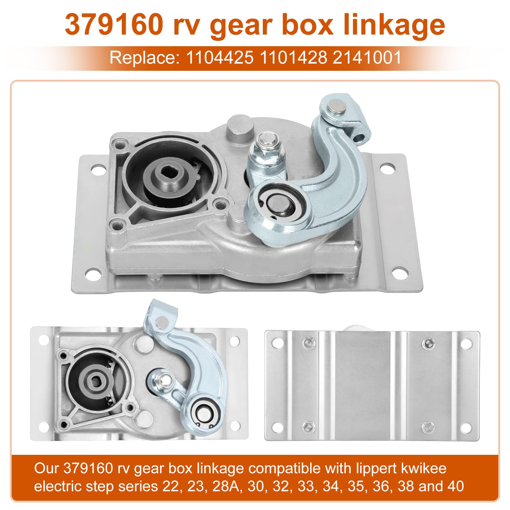 1. Compatible con: Nuestro enlace de caja de engranajes 379160 para RV compatible con escalones eléctricos lippert kwikee series 22, 23, 28A, 30, 32, 33, 34, 35, 36, 38 y 40. Reemplaza el número de parte 1101425.