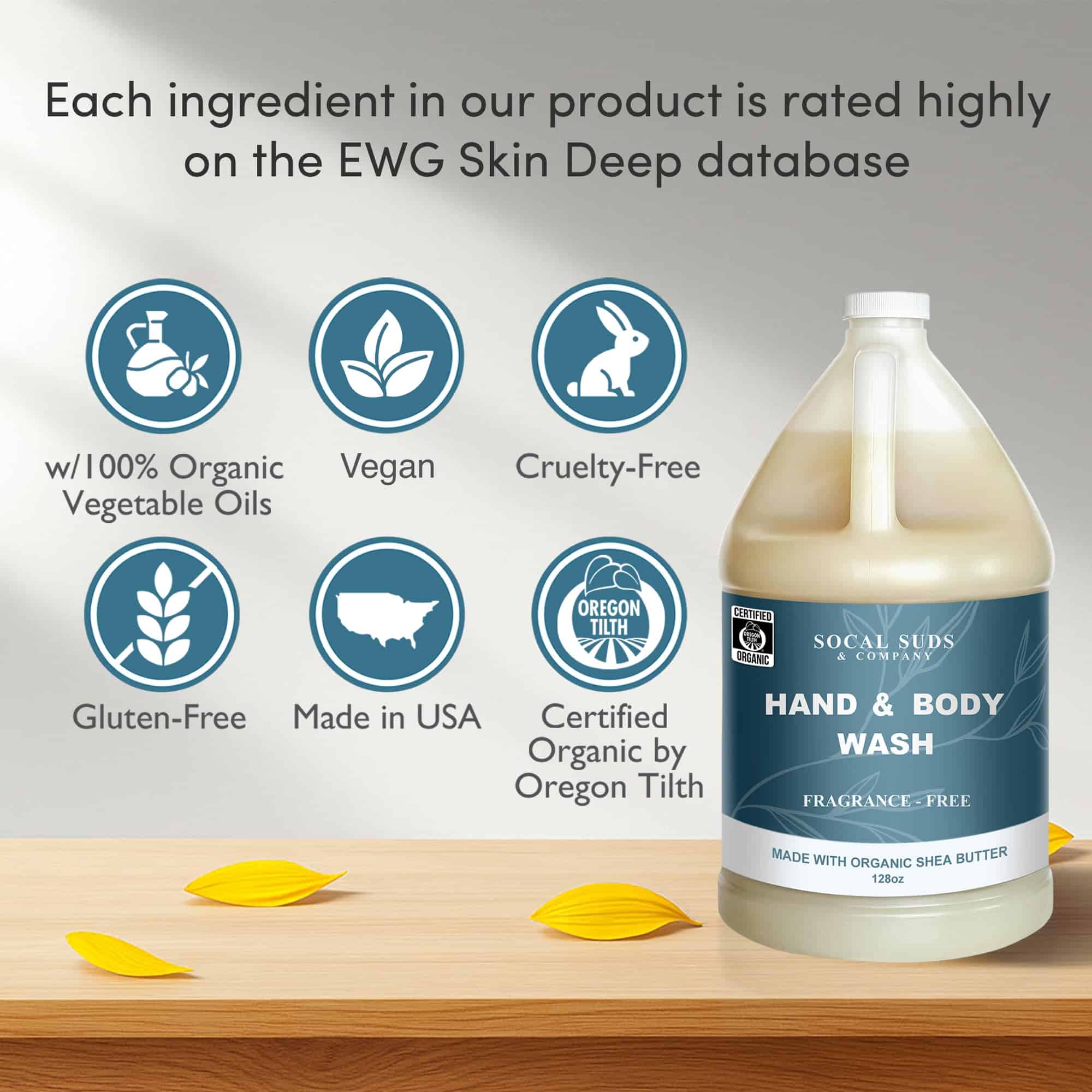 SoCal Suds & Company 128oz Jabón de Cuerpo y Manos Orgánico