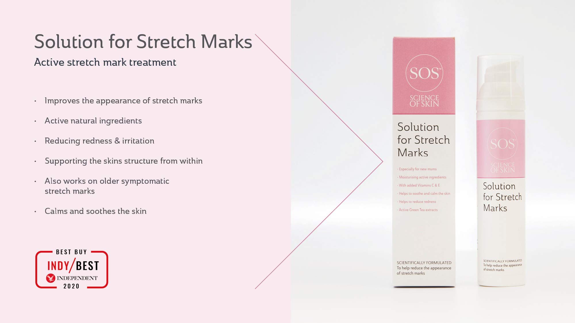 La Solución para Estrías SOS Science of Skin utiliza ingredientes potentes de la ciencia y la naturaleza para calmar activamente y reducir la apariencia de las estrías. Con microalgas activas, uno de los ingredientes naturales más intensamente hidratantes disponibles, protegiendo y calmando la piel. Además, contiene extracto de té verde (egcg), que ha sido clínicamente probado para reducir las cicatrices en un 40%, disminuir el enrojecimiento y calmar la irritación. Esta increíble formulación combina extractos activos de té verde, ingredientes naturales altamente hidratantes y vitaminas C y E para lograr resultados efectivos. La marca Science of Skin se destaca por su compromiso con la calidad, ya que toda su gama está certificada Vegana, libre de Parabenos, libre de Fragancias y no testeada en Animales.
