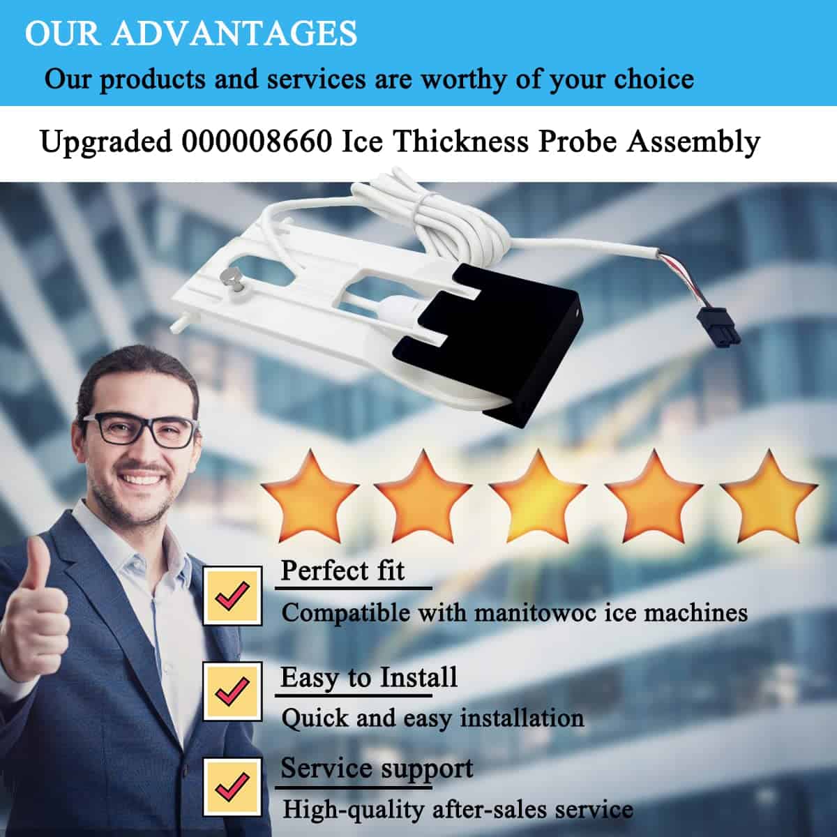 Upgrade 000008660 000015209 Ice Thickness Probe Assembly for Manitowoc, 8660 Ice Thickness Control, Compatible with Indigo Series Ice Machine, Has Upgrade Patent, 15 Year Warranty