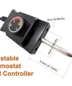 3. Controlador de termostato de 125V, control de sonda con 1-3/8″ de espacio entre terminales. El controlador le permite ajustar la temperatura desde aproximadamente 50 F hasta 450 F.