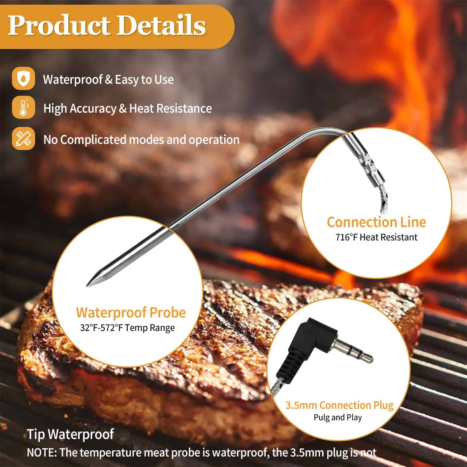 Sondas de carne de repuesto para parrilla -3.5mm Plug Digita