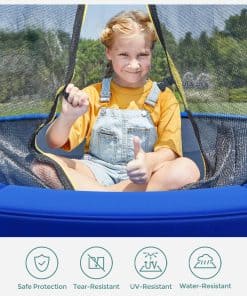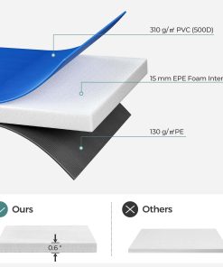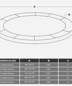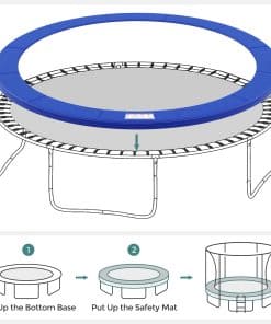 Esta almohadilla de seguridad para trampolín de reemplazo de 15 pies, de la marca SONGMICS, es una opción ideal para proteger a los saltadores de caídas en el marco de acero directamente o ser pellizcados por los resortes. Con un ancho de 11 3/4» y un grosor de 5/8», esta almohadilla proporciona una protección amplia y gruesa. La cubierta de PVC de alta calidad es resistente a los rayos UV y al agua, garantizando la durabilidad y protección contra los elementos. La costura de calidad evita desgarros por el uso diario, lo que garantiza una larga duración. Además, esta almohadilla de seguridad proporciona protección de borde a borde, absorbiendo rebotes accidentales y brindando una experiencia de salto más segura. La instalación es fácil y rápida, simplemente use las correas debajo para sujetar la cubierta de resorte al trampolín. ¡Disfrute de saltar con esta almohadilla de seguridad confiable y duradera para trampolines de 15 pies!