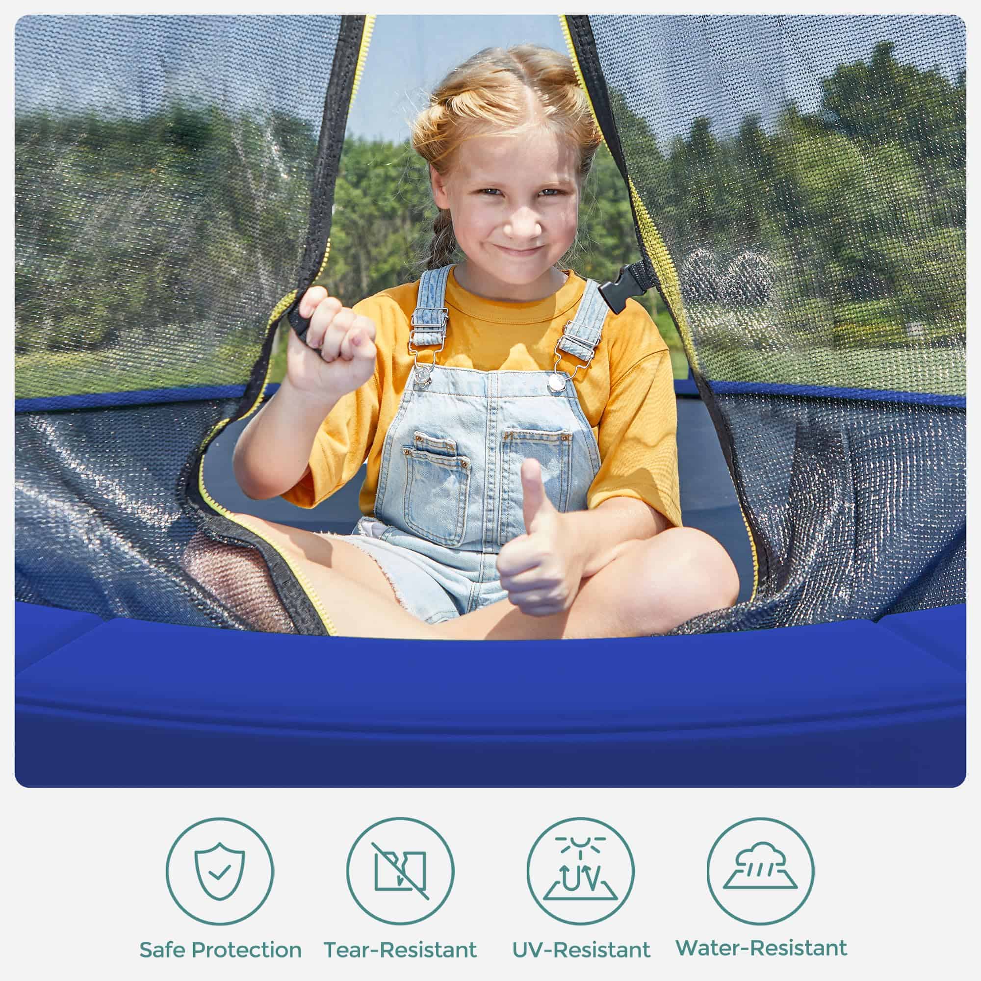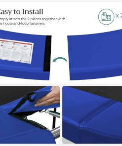 2. Rápido y Fácil Viene en dos partes semicirculares, simplemente alinéalas en ambos lados, pega los cierres de gancho y lazo, ata las correas por debajo de tu trampolín, ¡y listo! ¡No es necesario desmontar todas las redes y postes. Brillante, ¿verdad?.