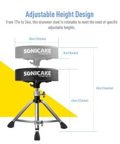 SONICAKE Banqueta de Batería, Asiento de Batería Resistente