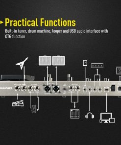 Además, cuenta con un lazo de efectos estéreo y pedal de expresión, así como entrada de pedal interruptor y salida XLR para una conectividad completa. La interfaz de audio USB permite la transmisión de audio estéreo y es compatible con la función OTG para una fácil conexión a dispositivos móviles iOS/Android.