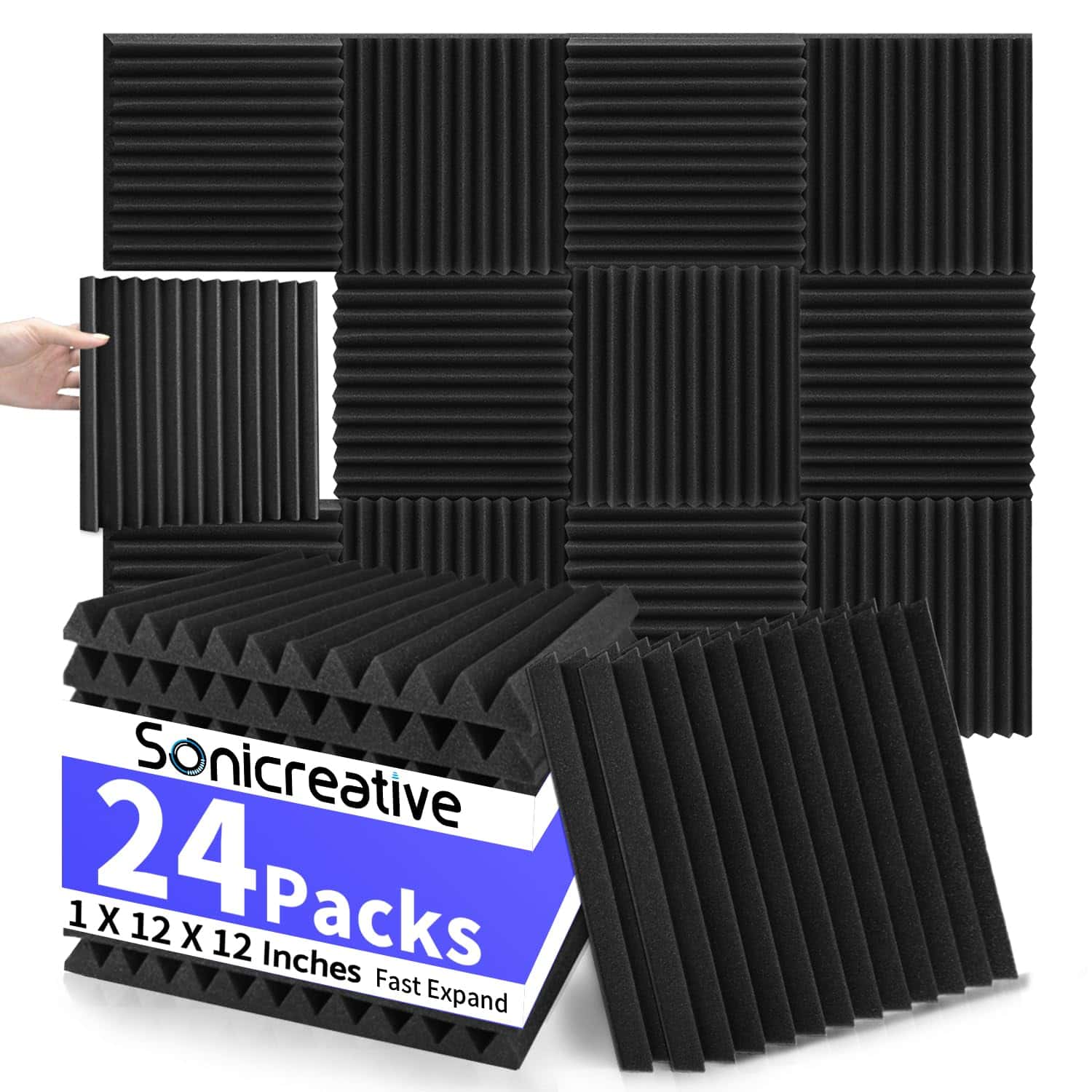 Sonicreative 24 Pack Paneles de Espuma Acústica 1 X 12 X 12