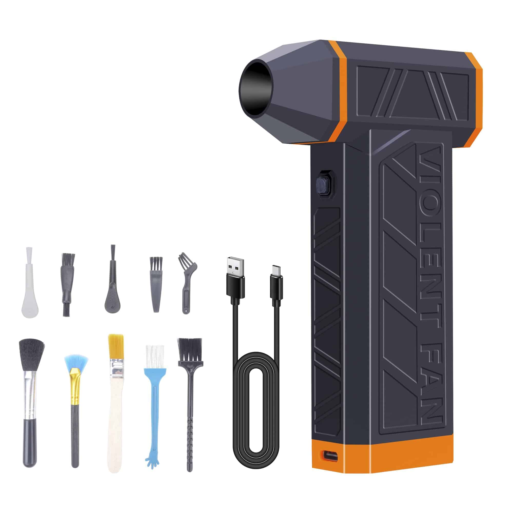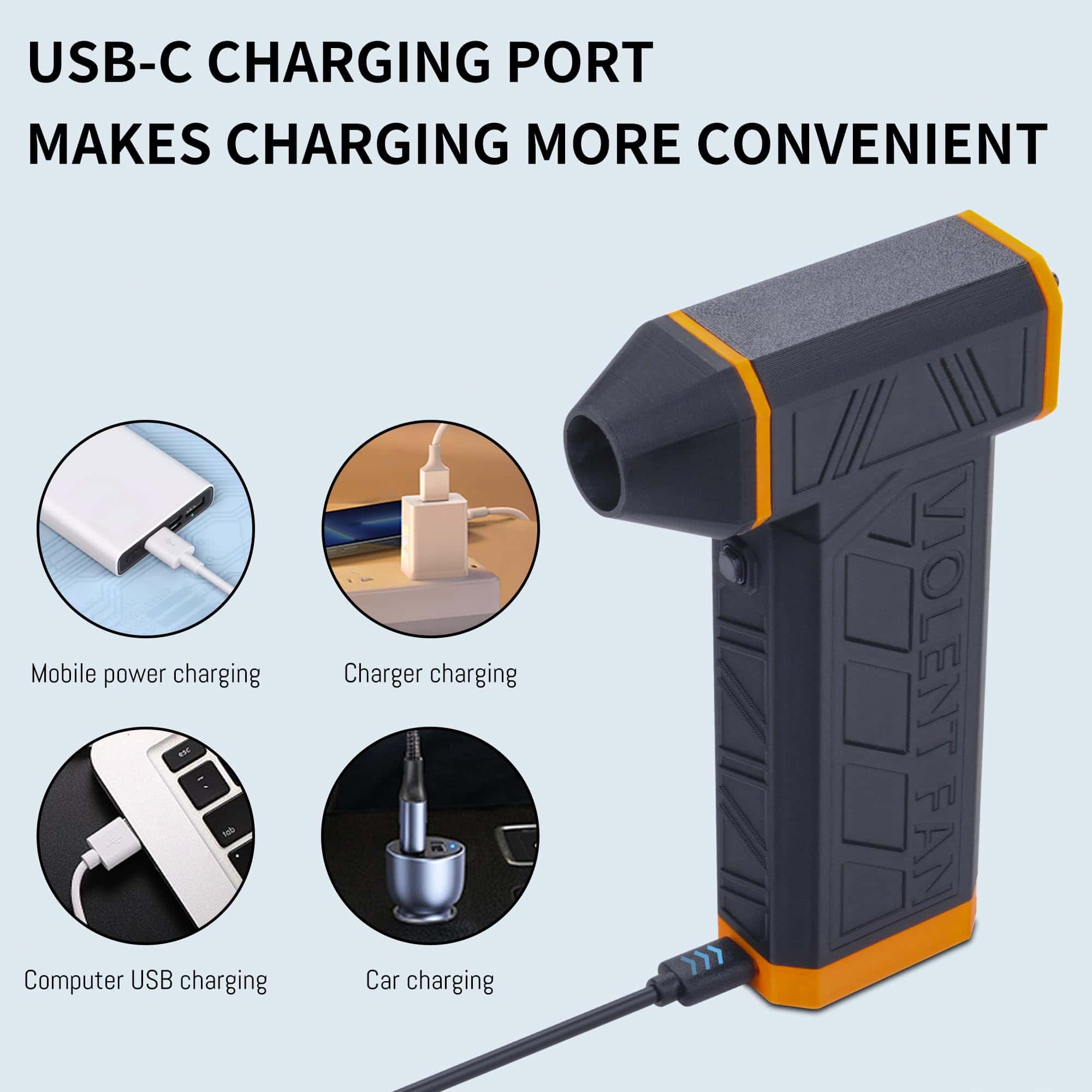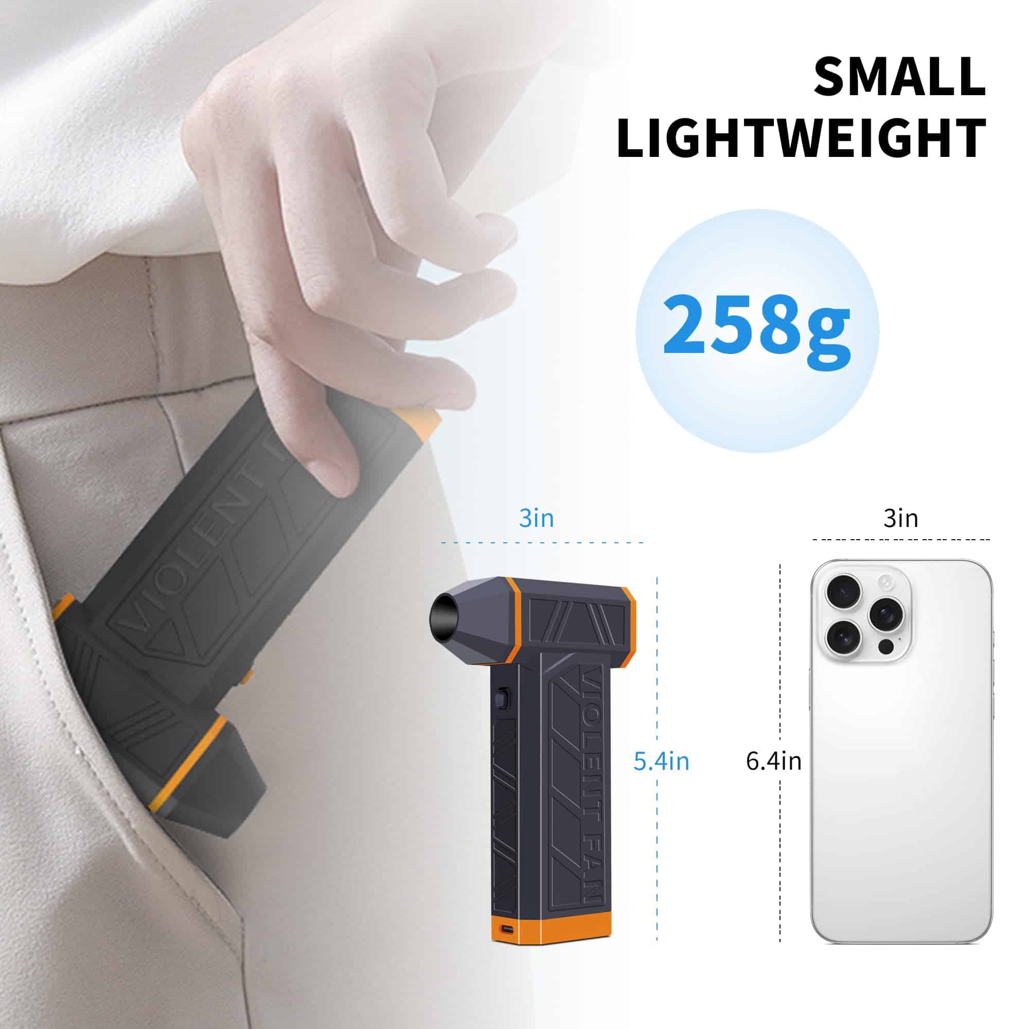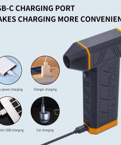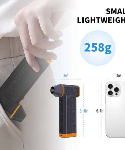 Soplador de aire comprimido 300000 RPM Turbo Ventilador Soplador de aire con velocidad variable, Soplador de aire para PC, Secador de coche, Soplador de aire, Ventilador Jet reutilizable para PC, teclado, coche, hogar, camping al aire libre 8000mAh. Soplador de aire compresor equipado con un motor avanzado Brushless de alta velocidad: velocidad máxima de salida de 300,000 RPM, potencia fuerte, estabilidad duradera, larga vida útil, carga prolongada no quema la máquina. Esta recolectora de soplador de aire comprimido es un potente soplador de aire que puede eliminar fácilmente la suciedad y los residuos ocultos en las diversas grietas de su teclado o cualquier dispositivo electrónico. Soplador de aire eléctrico recargable: Alternativa al aire comprimido enlatado que se puede recargar y usar repetidamente, más eficiente en energía y ahorro de dinero. El soplador de aire admite carga rápida de hasta 10W, solo tarda 3 horas en cargarse por completo y dura 4 horas con carga completa en la configuración de velocidad más baja. La batería está equipada con protección de temperatura de 150 C y protección contra cortocircuitos para garantizar la seguridad y una vida útil extendida. Soplador de aire Jet multifunción: Como ventilador secador de coche para limpiar el polvo del asiento del coche, la nieve del coche, el agua del coche, las cuchillas del coche. El soplador de aire jet es adecuado para limpiar teclados de computadoras, laptops, cámaras y cortinas. Los ventiladores turbo incluso se pueden usar en productos que requieren inflado, como colchones de aire y botes salvavidas. También se puede utilizar para picnic, limpieza del hogar y pelo de mascotas. Extremadamente conveniente de usar en el hogar, la oficina o el soplador de aire del coche. Soplador de aire eléctrico turbo de 3 velocidades: El soplador de aire eléctrico está equipado con 3 velocidades de viento ajustables, para que pueda elegir la velocidad apropiada según el elemento a limpiar. El soplador de aire está hecho de material compuesto de ABS duradero, es pequeño y ligero (solo 0.48 libras). El mango adopta un diseño ergonómico de material antideslizante, se siente más cómodo, fácil de usar, en cualquier momento y en cualquier lugar. Servicio postventa: Ofrecemos una garantía satisfactoria de dos años. Si tiene alguna pregunta sobre el uso del producto, contáctenos, lo resolveremos en 24 horas. El paquete incluyó Soplador de aire comprimido, carga USB Type-C