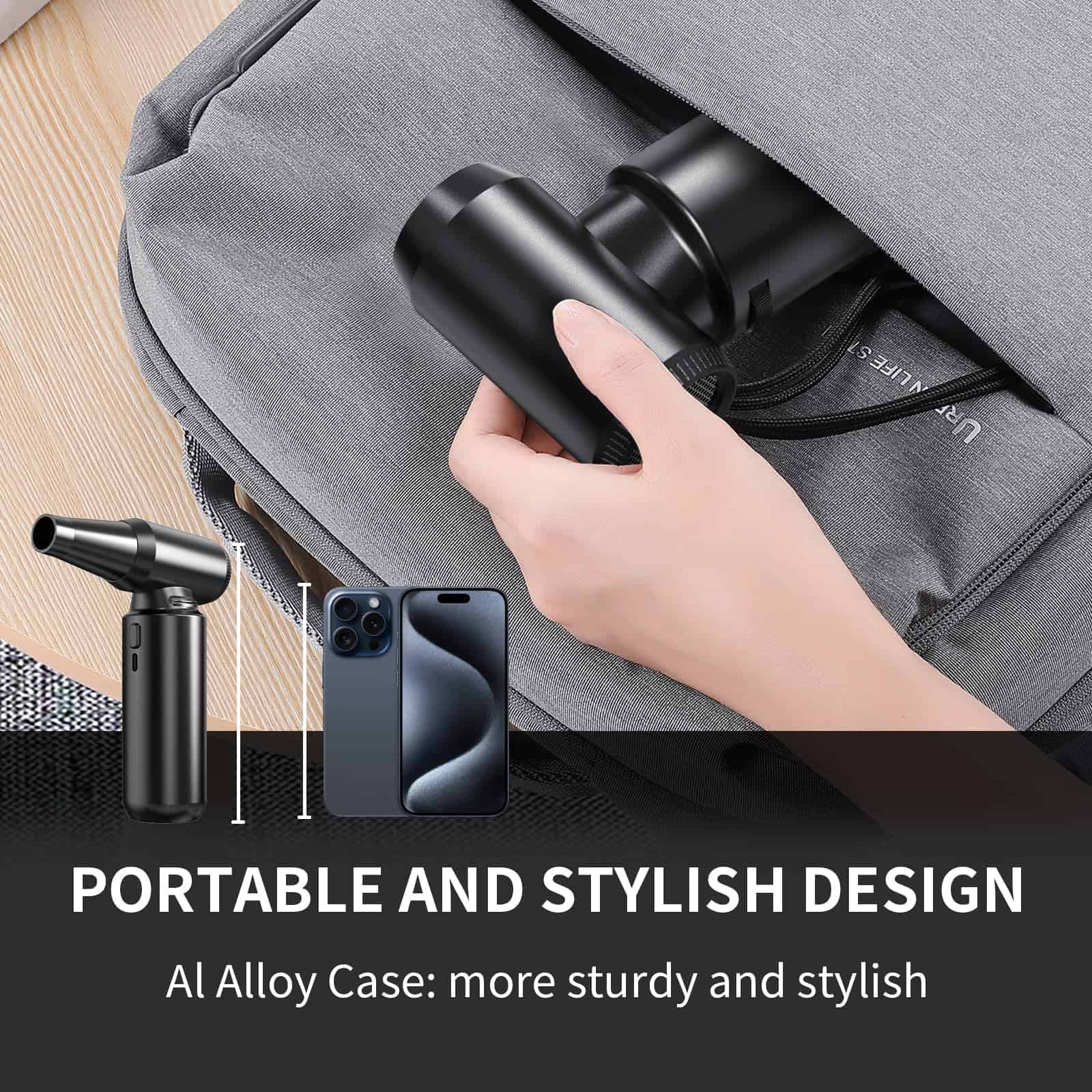 5. Económico y Reutilizable: El soplador de aire está fabricado con materiales duraderos de aleación de aluminio y tiene una larga vida útil de la batería. A diferencia de las latas de aire comprimido de un solo uso, el soplador de aire puede utilizarse más de 500 veces después de una carga completa, lo que lo hace económico mientras mejora su experiencia de limpieza.
