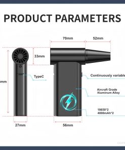 3. Carga rápida: Equipado con un cable de carga Tipo-C, este soplador de aire puede cargarse completamente en solo 2 horas. Dependiendo de la configuración de potencia seleccionada, proporciona un tiempo de funcionamiento de 15 a 60 minutos, lo que le permite realizar sus tareas de manera rápida y eficiente.