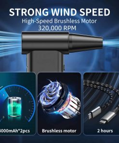 2. Rendimiento robusto: Este soplador utiliza un motor de corriente continua sin escobillas eficiente para producir un flujo de aire potente, eliminando el polvo y los desechos de las superficies. Con dos baterías de 8000 mAh, ofrece una alternativa sostenible a las latas de aire comprimido convencionales.