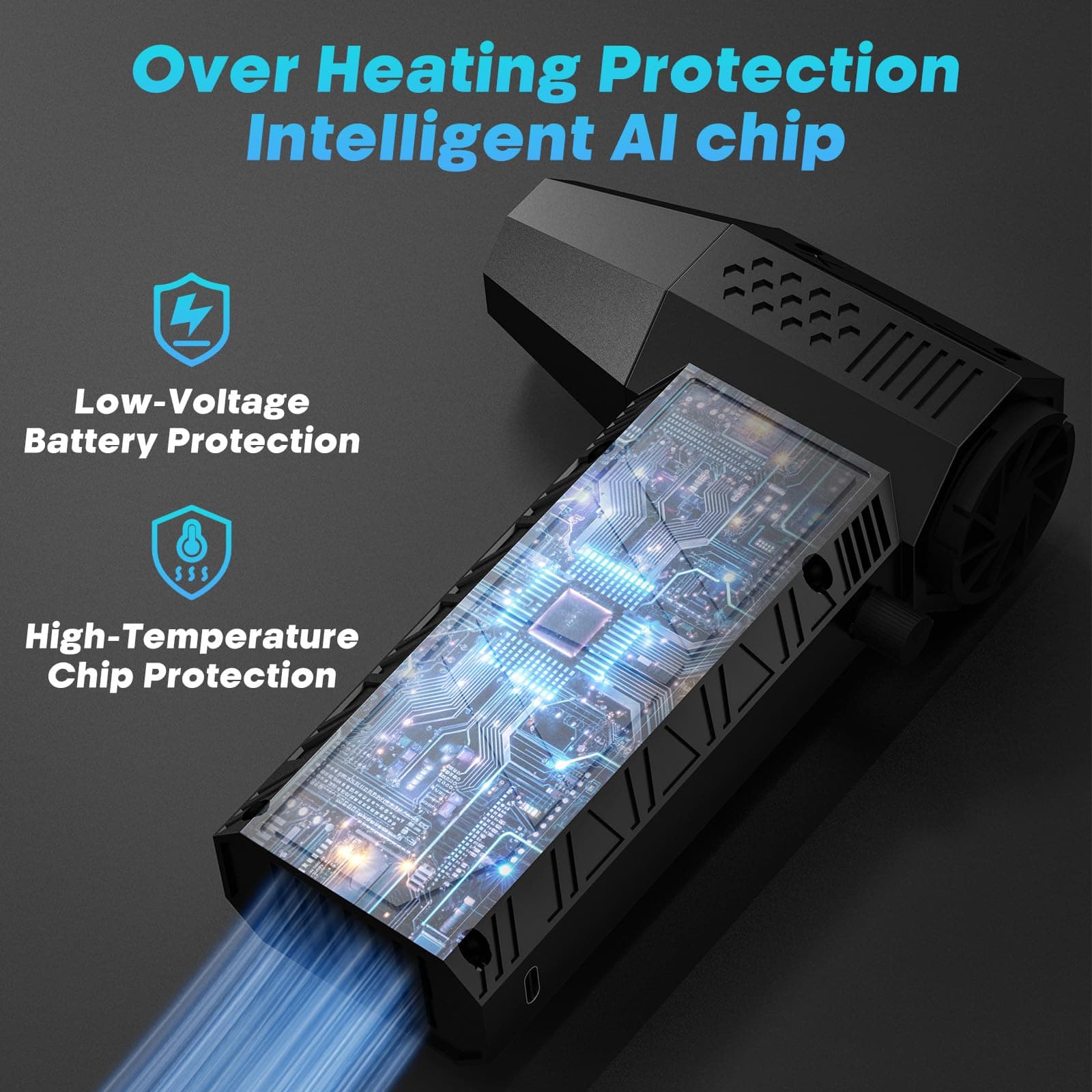 5. Materiales Avanzados, Duraderos, Seguros y Portátiles Este mini soplador de aire inalámbrico está fabricado con material compuesto avanzado de alta dureza y disipación de calor rápida, resistente y ligero, con fuerte magnetismo y mango antideslizante. También mejoramos la estructura del orificio del soplador y agregamos un nuevo orificio de enfriamiento en la parte inferior para aumentar el potente estallido manteniendo la temperatura baja. Además, es ligero y fácil de transportar, proporcionando un agarre cómodo.