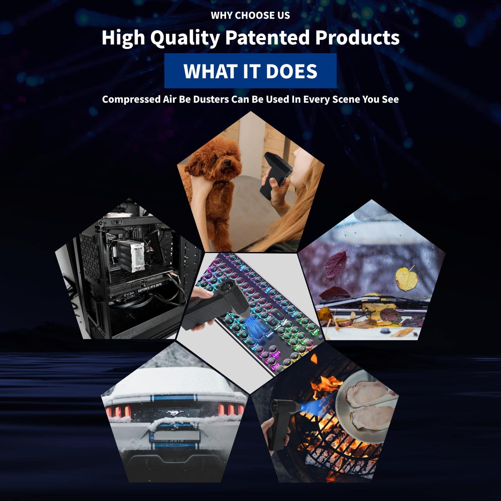 3. Mejor Rendimiento: En comparación con las latas de aire comprimido, no hay líquido ni congelación durante la limpieza. Protege tus dispositivos electrónicos de los líquidos, los sopladores de aire comprimido son recargables y reutilizables.