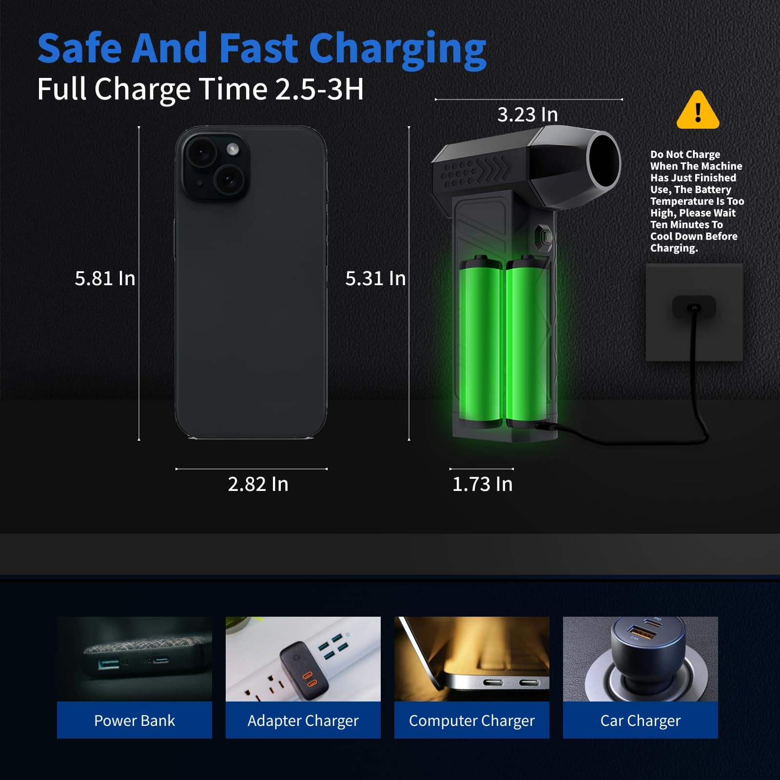 4. Múltiples Escenarios de Uso: Limpia la nieve y las hojas caídas en el coche, limpia el polvo en la computadora, enciende fuego para barbacoas al aire libre, puede usarse como secador de pelo, limpiar polvo y caspa en el suelo, etc.