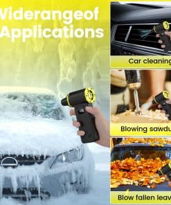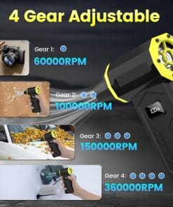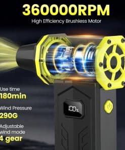 El soplador de aire comprimido es una herramienta potente y versátil que le ayudará a mantener sus dispositivos electrónicos y áreas de trabajo limpias y libres de polvo. Con una velocidad máxima de 360,000 RPM y una potencia de soplado de 290G, este soplador de aire es capaz de eliminar fácilmente el polvo y los residuos más difíciles de limpiar. Equipado con una pantalla LED que muestra claramente el nivel de potencia y una batería recargable de larga duración, este soplador de aire es conveniente y fácil de usar. Gracias a su diseño portátil y ligero, puede llevarlo a cualquier parte y utilizarlo en cualquier momento. No más botes de aire comprimido desechables, con este soplador de aire reutilizable y respetuoso con el medio ambiente, podrá limpiar sus dispositivos electrónicos de manera segura y eficiente. ¡No pierda la oportunidad de disfrutar de un aire más limpio y fresco con este soplador de aire de alta calidad!