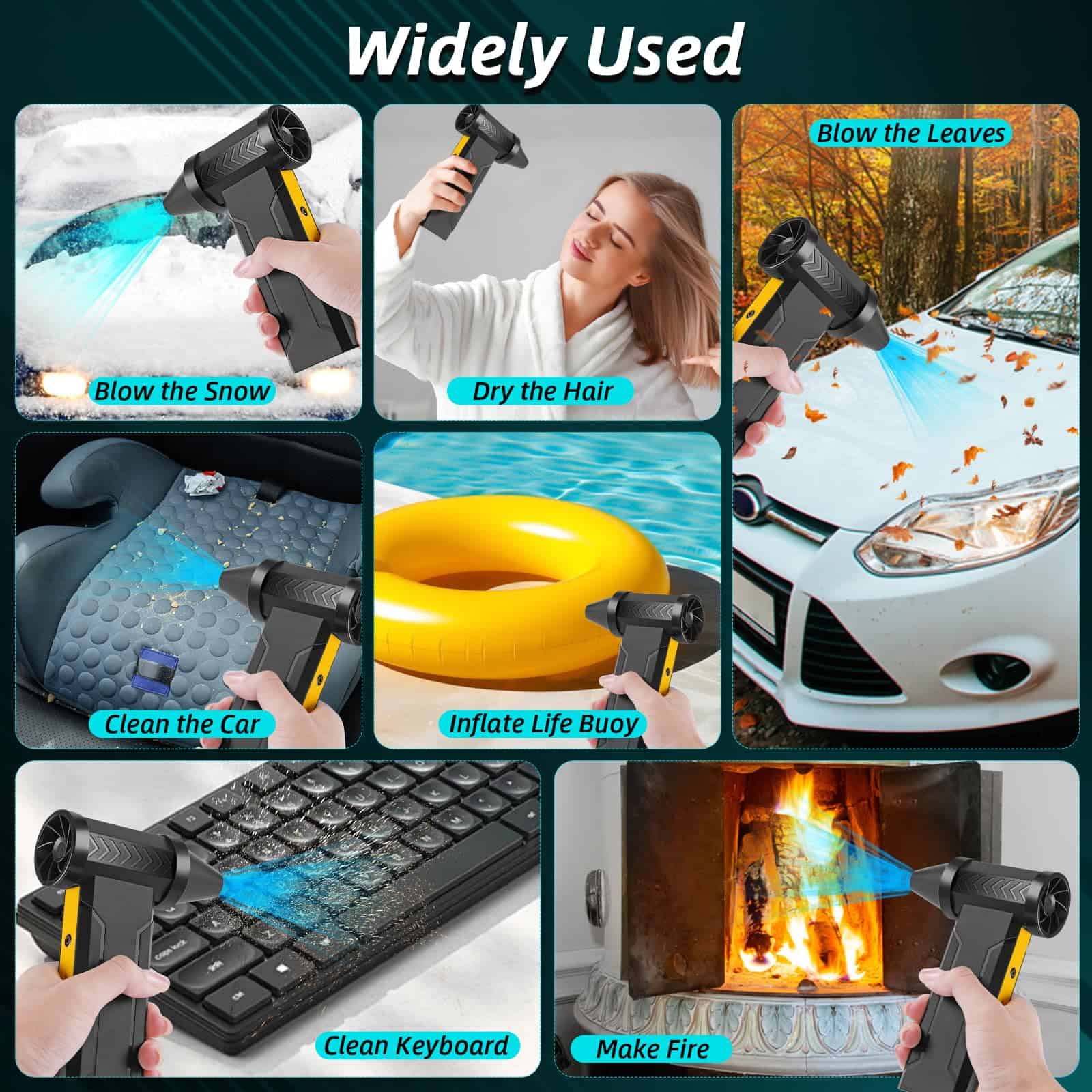1. Soplador de Aire Comprimido Súper Potente: El soplador de aire comprimido de Stron Dura utiliza la última tecnología de motor súper potente que genera una velocidad máxima de 160,000 RPM y una fuerza de soplado fuerte. El viento poderoso elimina eficazmente el polvo, los residuos y la pelusa de áreas de difícil acceso. 2. Carga Rápida y Batería de Larga Duración: El soplador de aire viene con un cable de carga USB tipo C, admitiendo carga rápida de hasta 10W. Puede cargarse por completo en aproximadamente 3.5 horas. Nuestro soplador de aire tiene una batería de 10000 mAh de alta calidad incorporada, compatible con 15-75 minutos de uso (dependiendo del engranaje que esté utilizando). 3. Material de Grado Superior: La carcasa de nuestro soplador de aire eléctrico está hecha de materiales de ABS de grado superior que son más duros y disipan el calor rápidamente. El motor que utilizamos es importado y sin escobillas, genera más fuerza potente. La estructura inferior del ventilador también está diseñada para una fácil disipación de calor y enfriamiento. Además, es liviano y compacto, muy fácil de transportar o almacenar. 4. Reemplazo de Latas de Aire Comprimido: en comparación con los tanques de aire comprimido, nuestro soplador de nieve portátil ofrece una solución más eficiente en cuanto a energía. Puede recargarse y reutilizarse muchas veces, sin riesgo de formación de líquidos o hielo durante la limpieza. Además, proporciona una protección efectiva para sus equipos electrónicos contra cualquier daño potencial por líquidos y es respetuoso con el medio ambiente. Sería un reemplazo ideal para las latas de aire comprimido. 5. Ampliamente Utilizado: Nuestro soplador de aire tiene 4 engranajes de diferentes velocidades de aire. Solo necesita presionar el botón para seleccionar el flujo de aire según sus necesidades. Puede usarlo para limpiar los teclados de computadora o soplar la nieve de su automóvil, polvo en su automóvil, etc. Puede ser una buena opción para regalos de cumpleaños, regalos de Navidad.