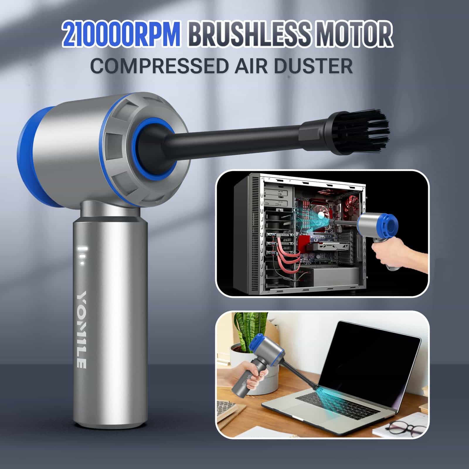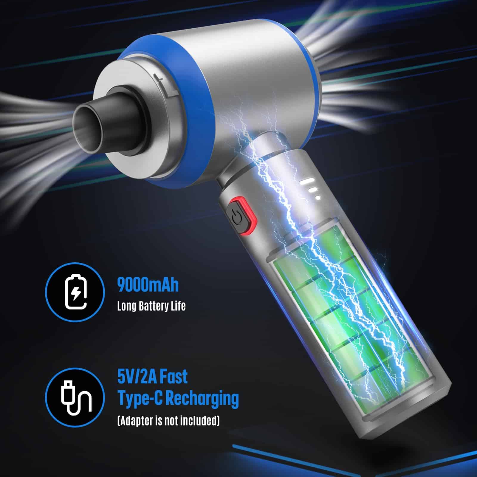3. Soplador de aire de 210000RPM El soplador de aire eléctrico inalámbrico tiene una velocidad máxima de rotación de 210000RPM, lo que puede producir aire de alta presión continuamente para eliminar el polvo, Limpiar la suciedad escondida en varios huecos del teclado o cualquier dispositivo electrónico, extremadamente conveniente de usar en el hogar, la oficina o el soplador de coche.